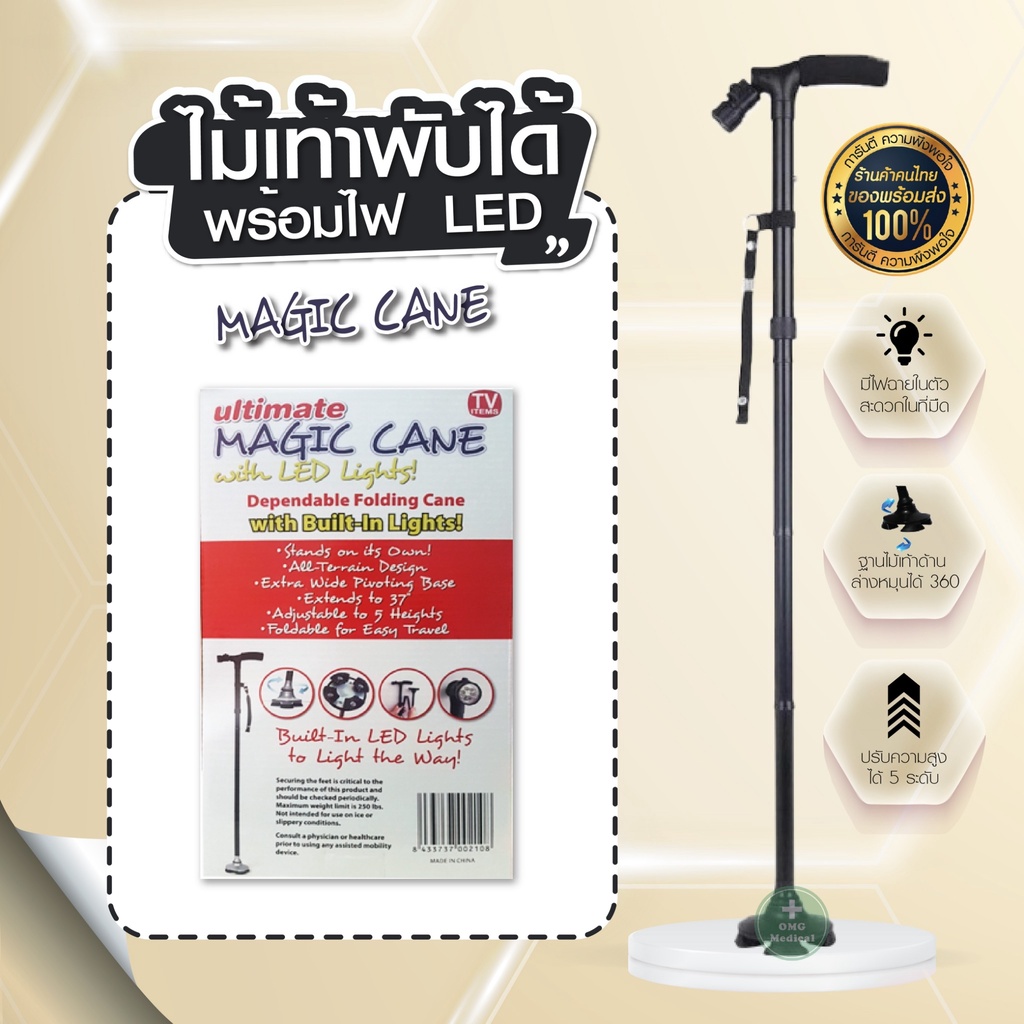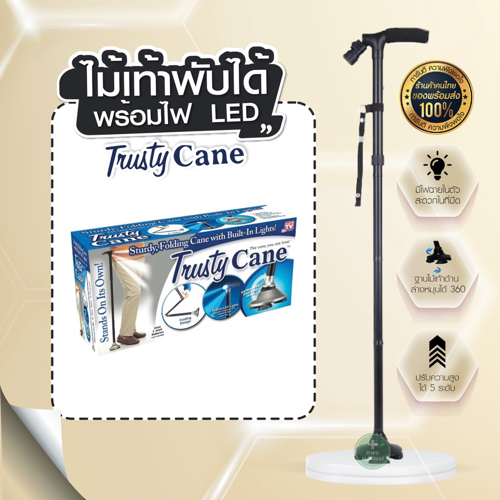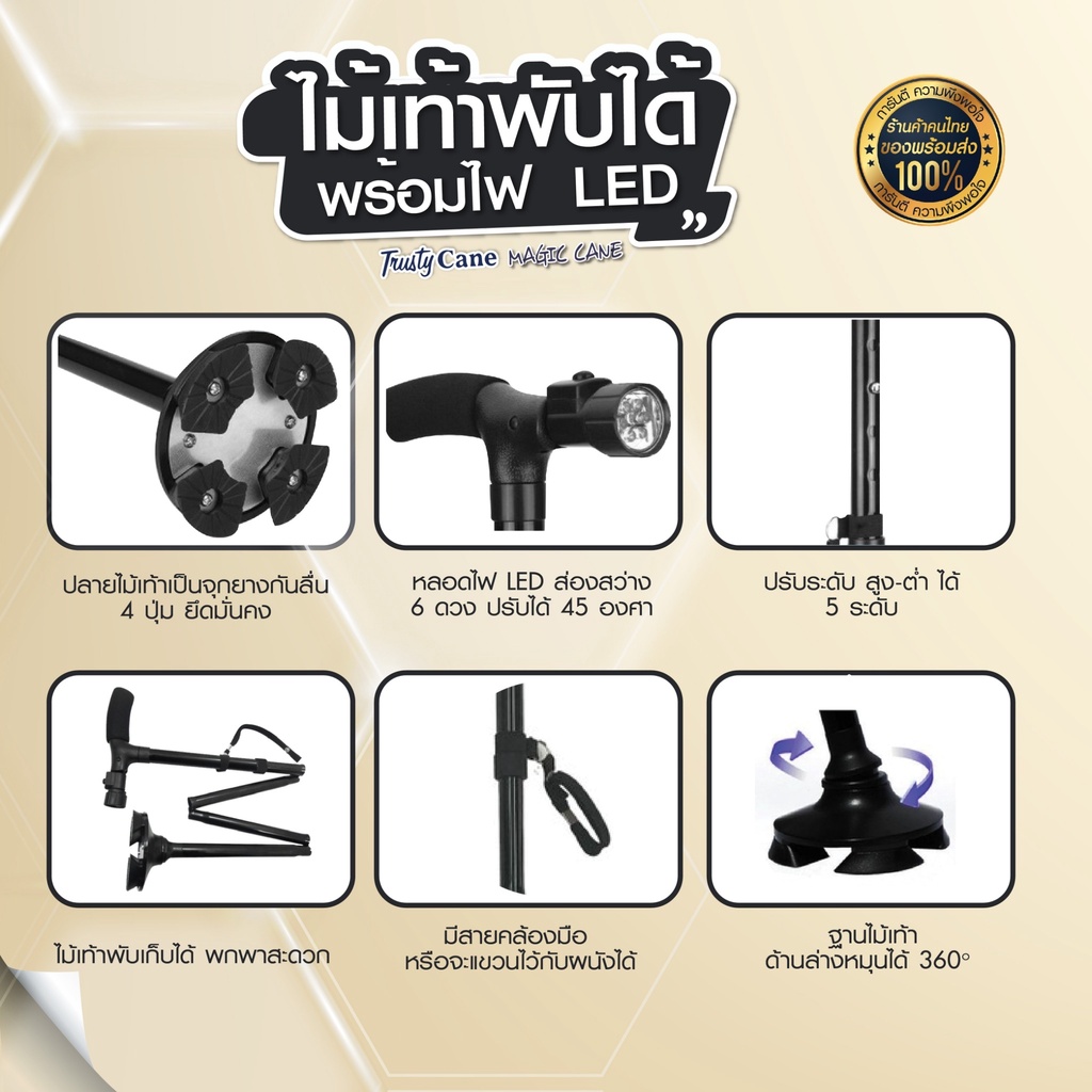 ไม้เท้าไฟฉาย ของแท้ 100% ไม้เ ท้า ไฟฉายLED ไม้เท้าพยุงตัวแบบพับได้มาพร้อมไฟฉายLED ของแท้ยี่ห้อ Trusty Cane และ Magic Cane