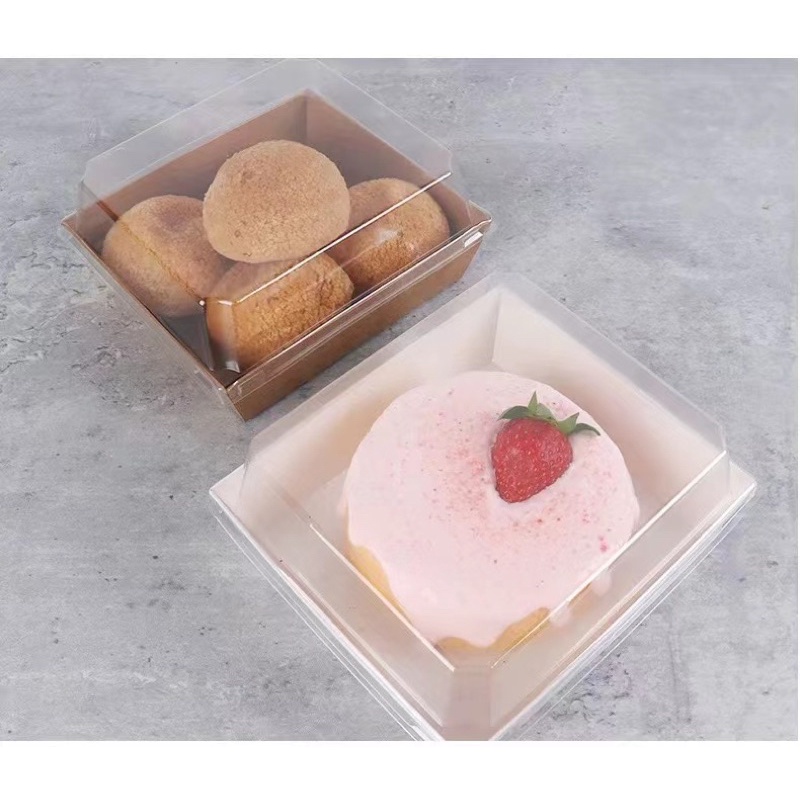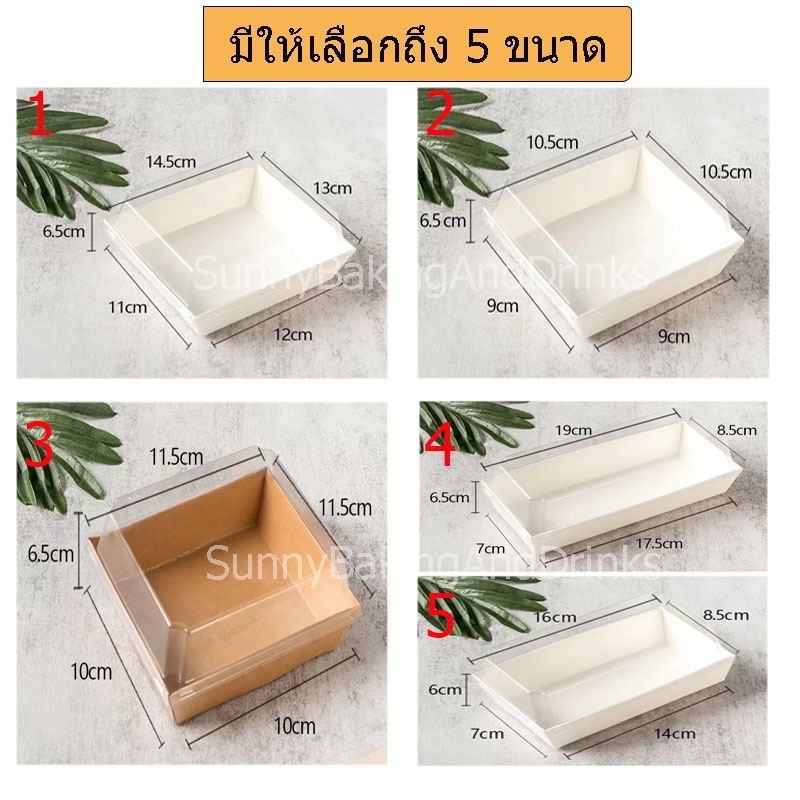 ☀️โค้ดส่งฟรี ☀️ กล่องเค้ก แพค 50ใบ 5ขนาด 2สี(ขาว / น้ำตาล) ฝา พลาสติก PET กล่องเค้กใส
