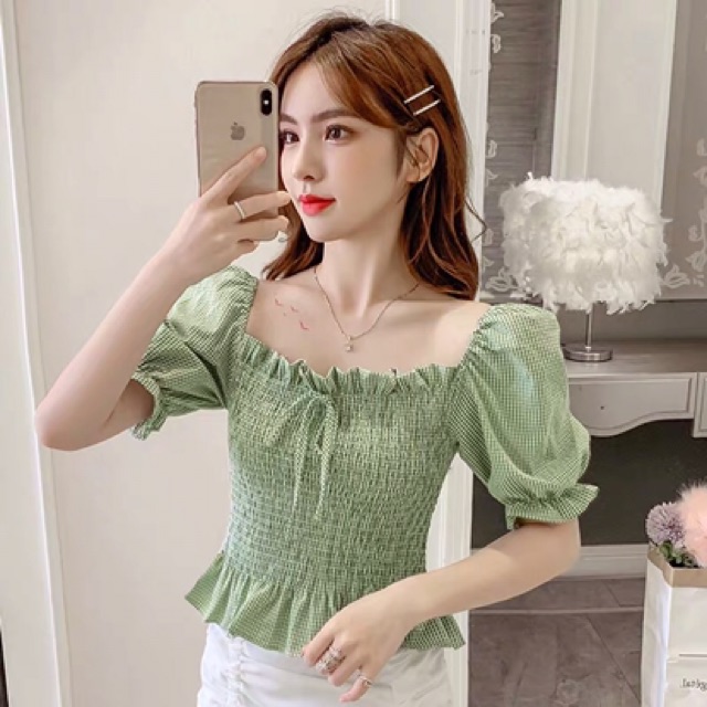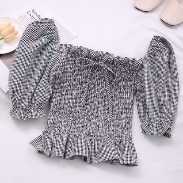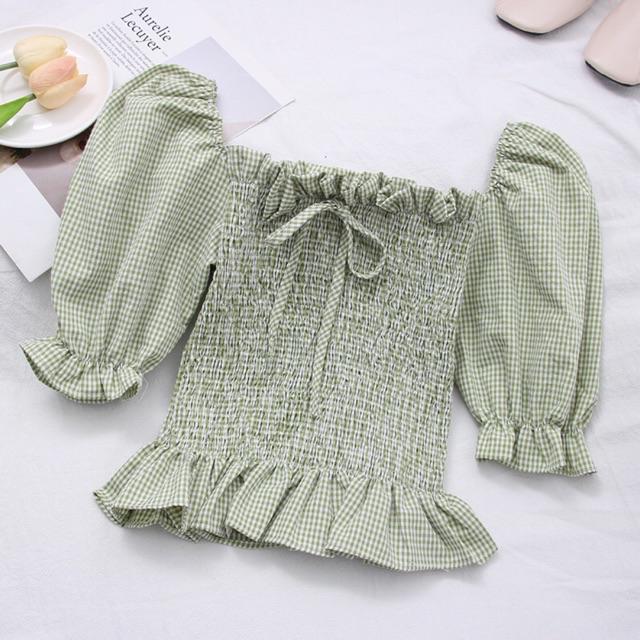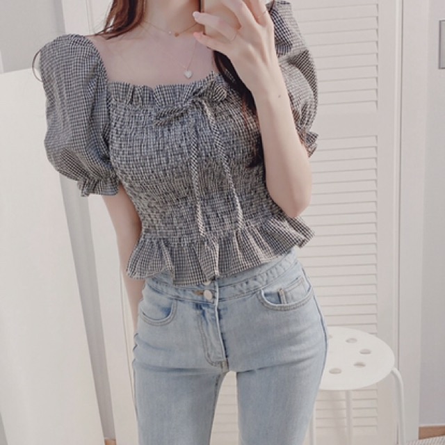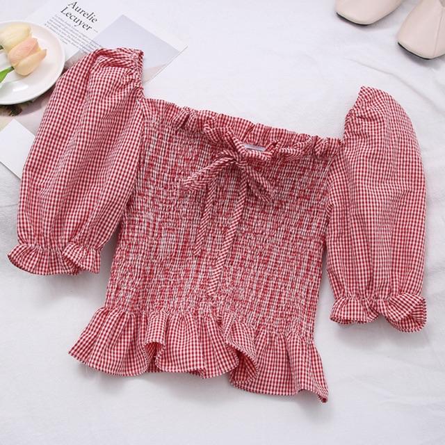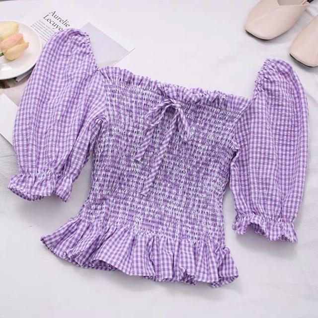 ♥️NEW Collection ♥️เสื้อครอปแฟชั่น สไตล์เกาหลีลายสก็อตงานนำเข้า ฟรีไซต์