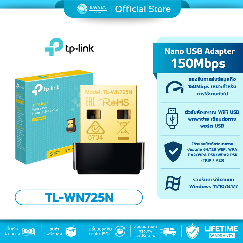 (มีส่งด่วน) TP-LINK TL-WN725N 150MBPS WIRELESS N NANO USB ADAPTER รับประกัน LT