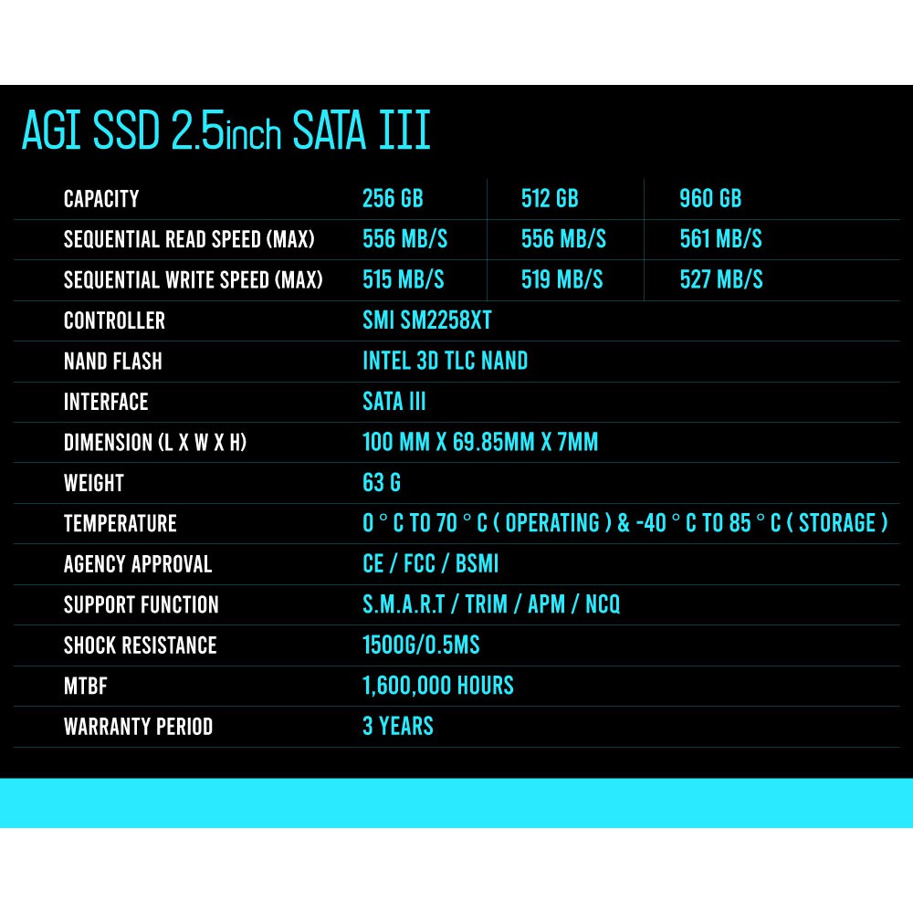 ⚡️ AGI SSD SATA 2.5″ 256GB Intel TLC NAND Flash ของใหม่ประกัน3ปี🤩