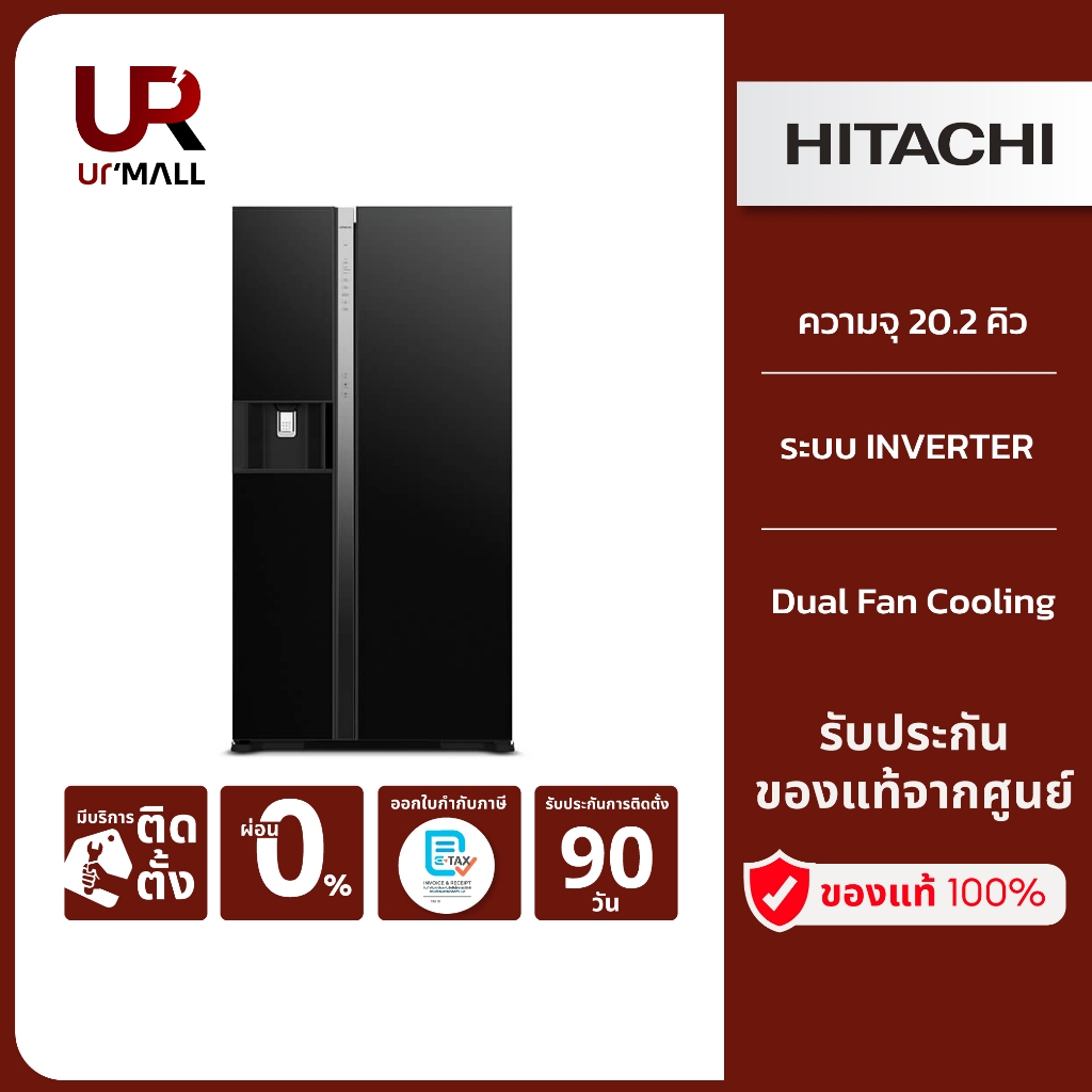 ⚡Flash Sale⚡ HITACHI ตู้เย็น 2 ประตู Side By Side Deluxe รุ่นRSX600GPTH0 GBK สีGlass Black ความจุ20.2 คิว