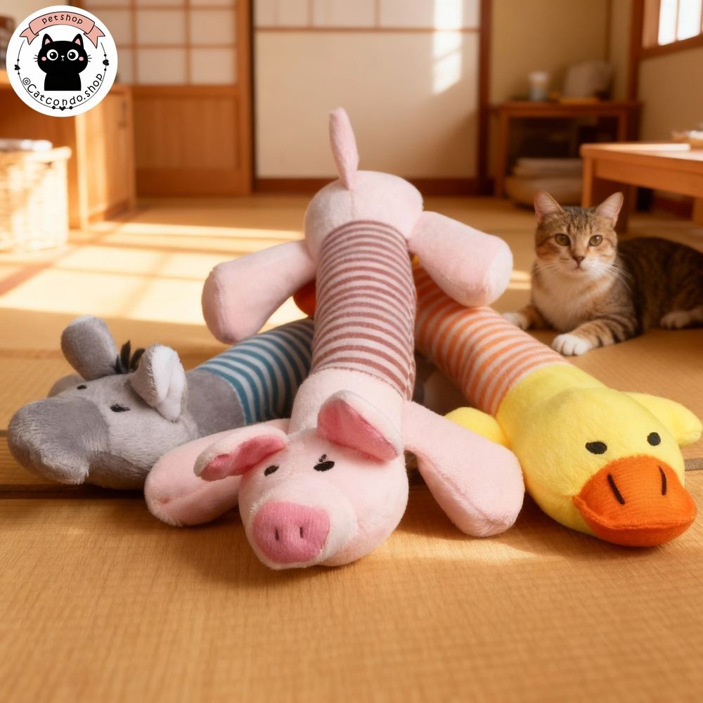 🌵 ของเล่นแมว ของเล่นสุนัข หมา ตุ๊กตากัดเล่น บีบมีเสียง ตุ๊กตาสัตว์เลี้ยง ช้าง หมู เป็ด 🌵