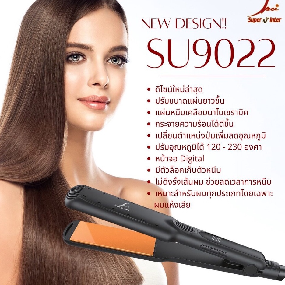 ➕ เครื่องหนีบผม Super v inter SU9021 -22 ซุปเปอร์วี นาโน เซรามิค เคลือบนาโน จอดิจิตอล ปรับความร้อนได้ รีดง่าย ที่หนีบผม