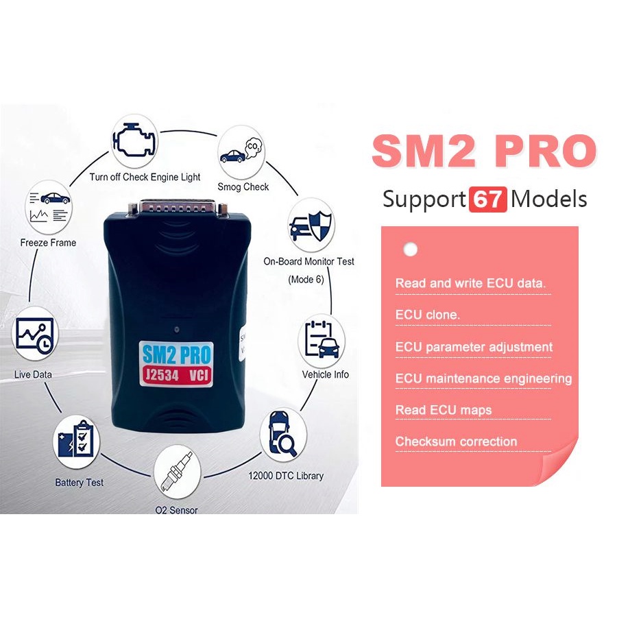 ⭐⭐⭐ใหม่ล่าสุด SM2 Pro J2534 VCI ECU เครื่องมืออ่านโปรแกรมเมอร์ และเขียนโปรแกรม รองรับ 67 โมดูล Scanmatik 2 Pro FLASH 67 IN 1 PCM BENCH 67IN1