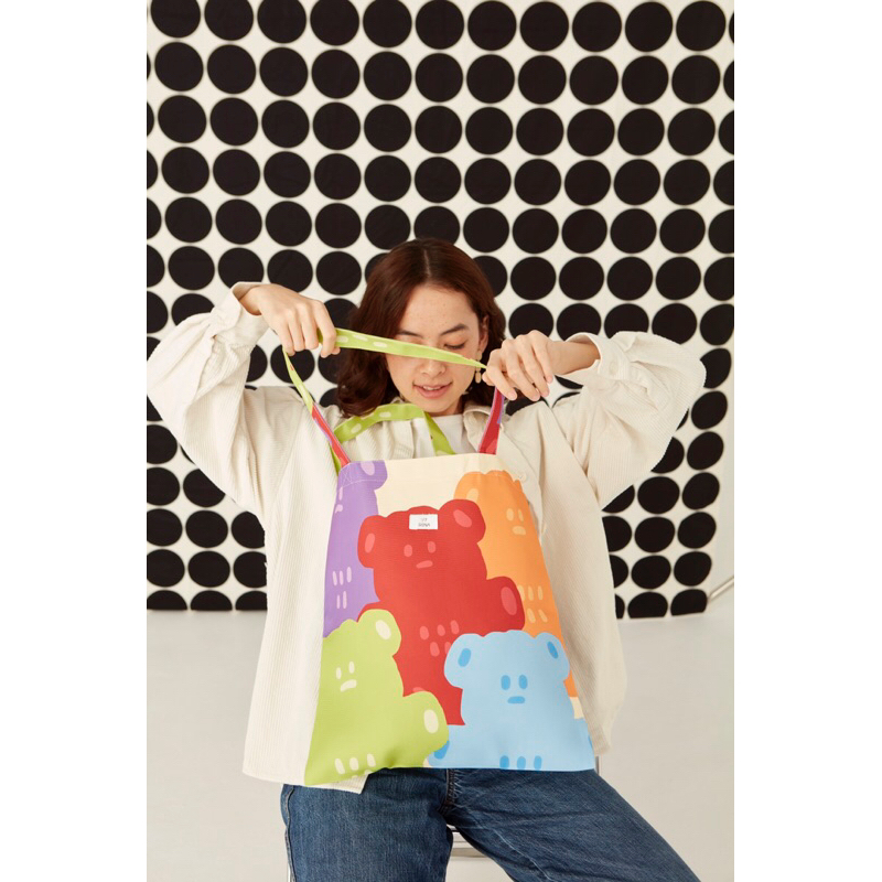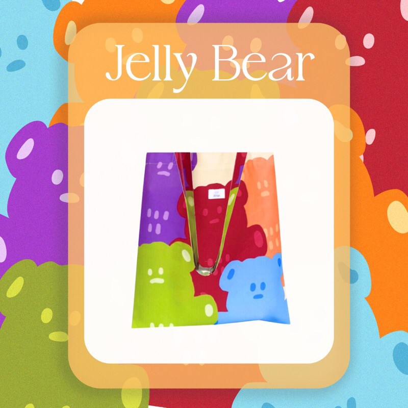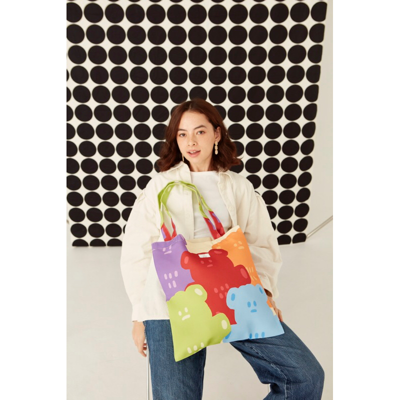 RINA Tote - กระเป๋าผ้า แคนวาส ลายหมีเจลลี่ มีซับใน กระเป๋าช่องเล็ก