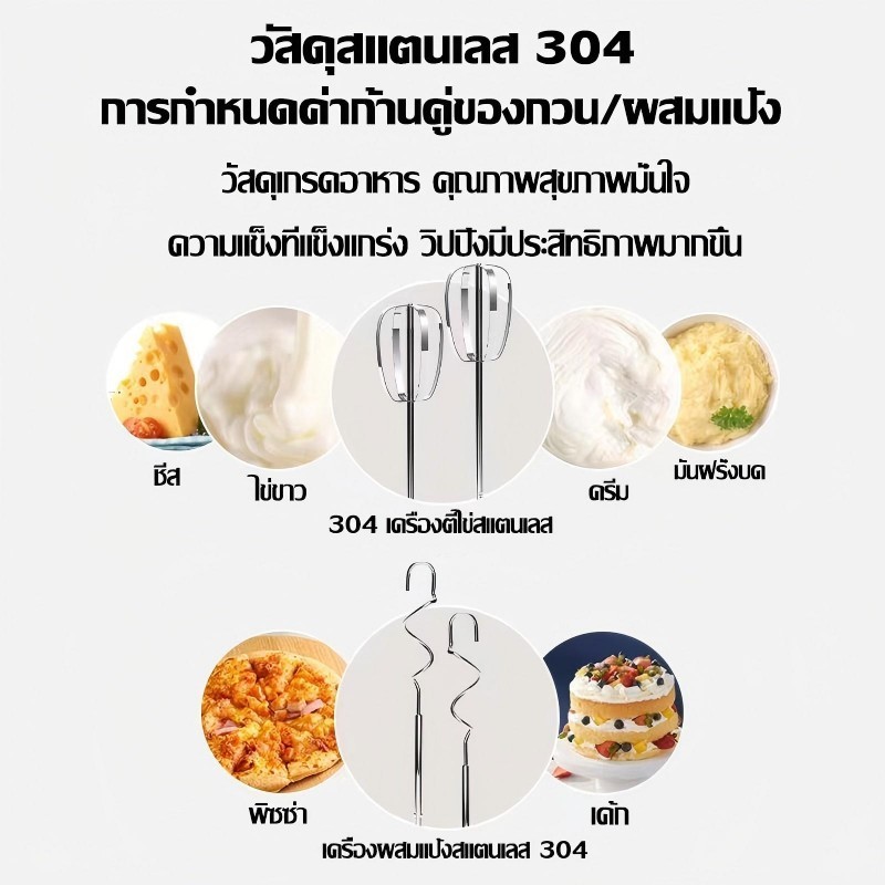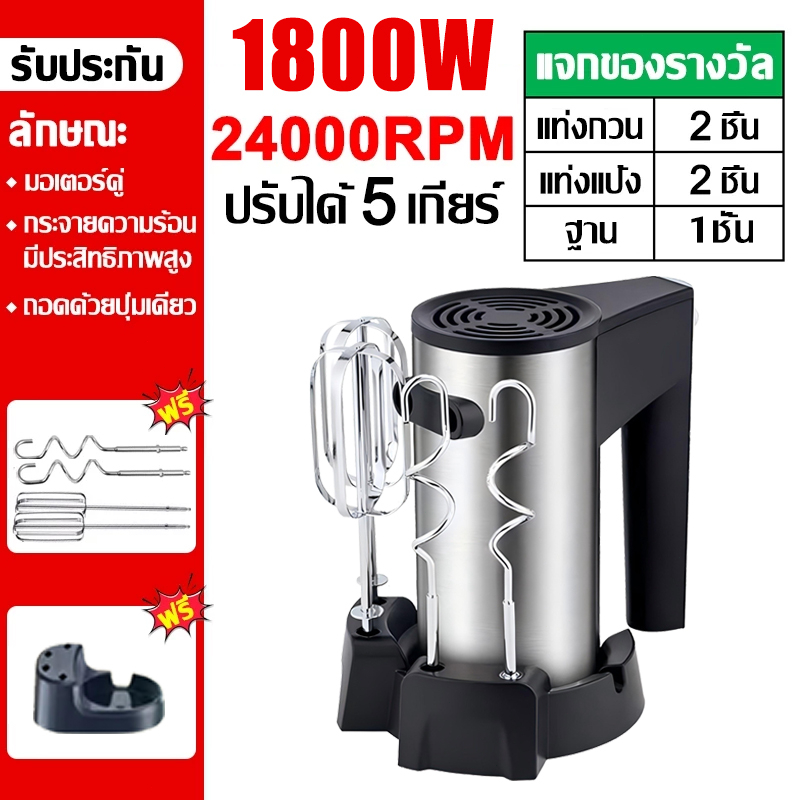 【รับประกัน20ปี】เครื่องผสมอาหาร เครื่องตีไข่ ไฟฟ้า 1800W หัวตี2แบบ ปรับความเร็วได้5ระดับ เครื่องปั่นผสมแป้งไฟฟ้า
