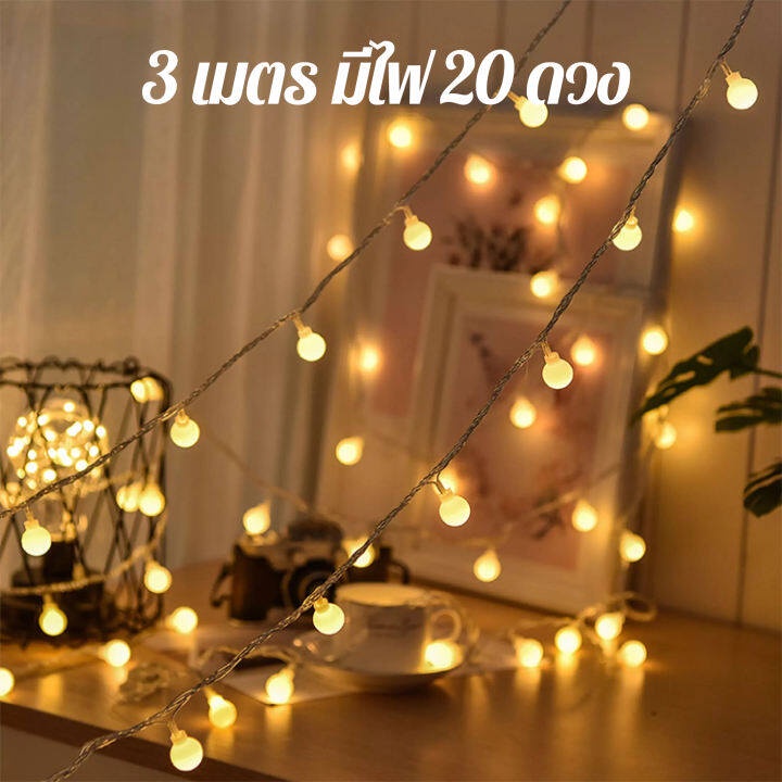 【สินค้าพร้อมส่ง】ไฟเชอรี่ ไฟกลมled ไฟตกแต่งห้อง ไฟกระพริบตกแต่ง ไฟตกแต่ง ไฟประดับ ไฟแคมป์ปิ้ง ไฟปีใหม่ ไฟหยดน้ำ ไฟสวน