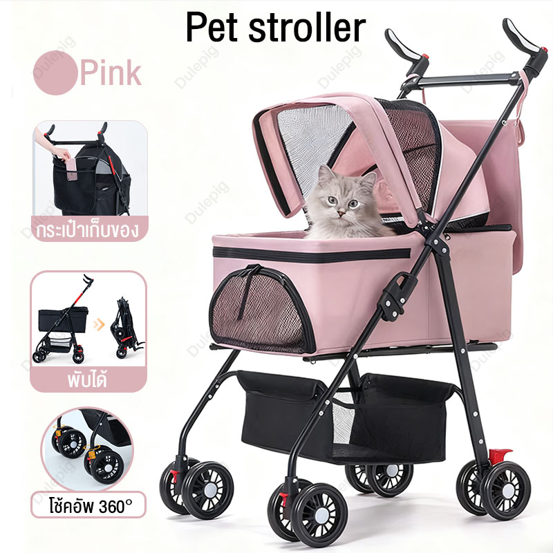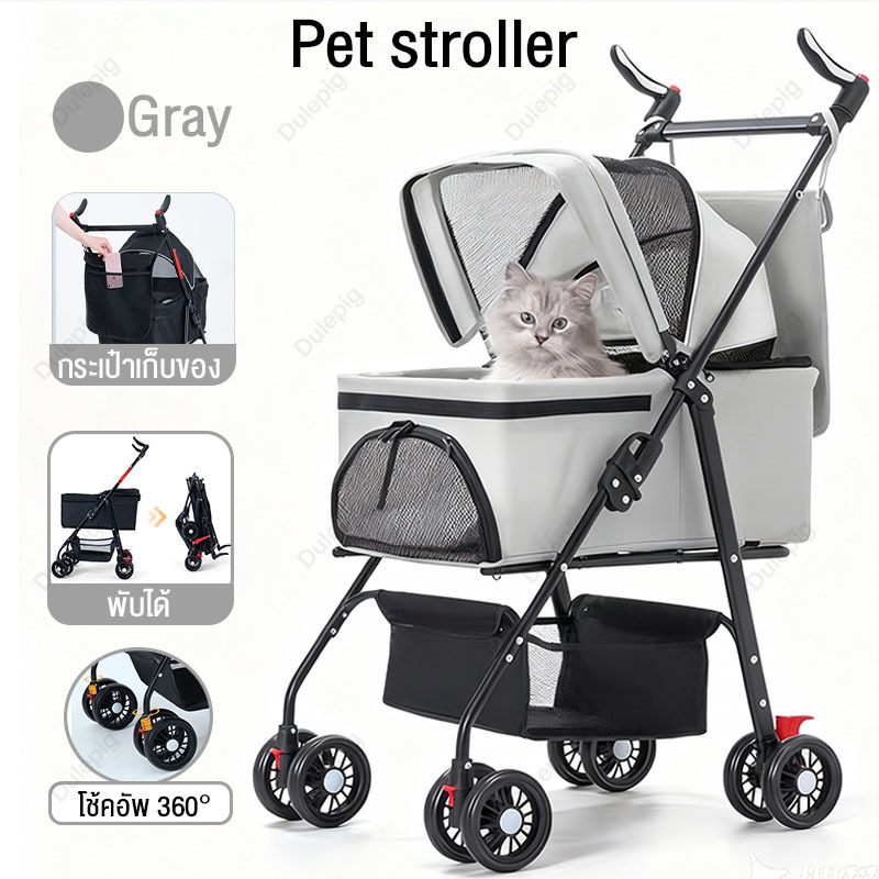 【ไทยพร้อมส่ง】 รถเข็นสุนัข รถเข็นสุนัขและแมว ถอดออกได้ รถเข็นสัตว์เลี้ยง รถเข็นสุนัข รถเข็นสัตว์ 4 ล้อ รถเข็นแมว 2 ชั้น