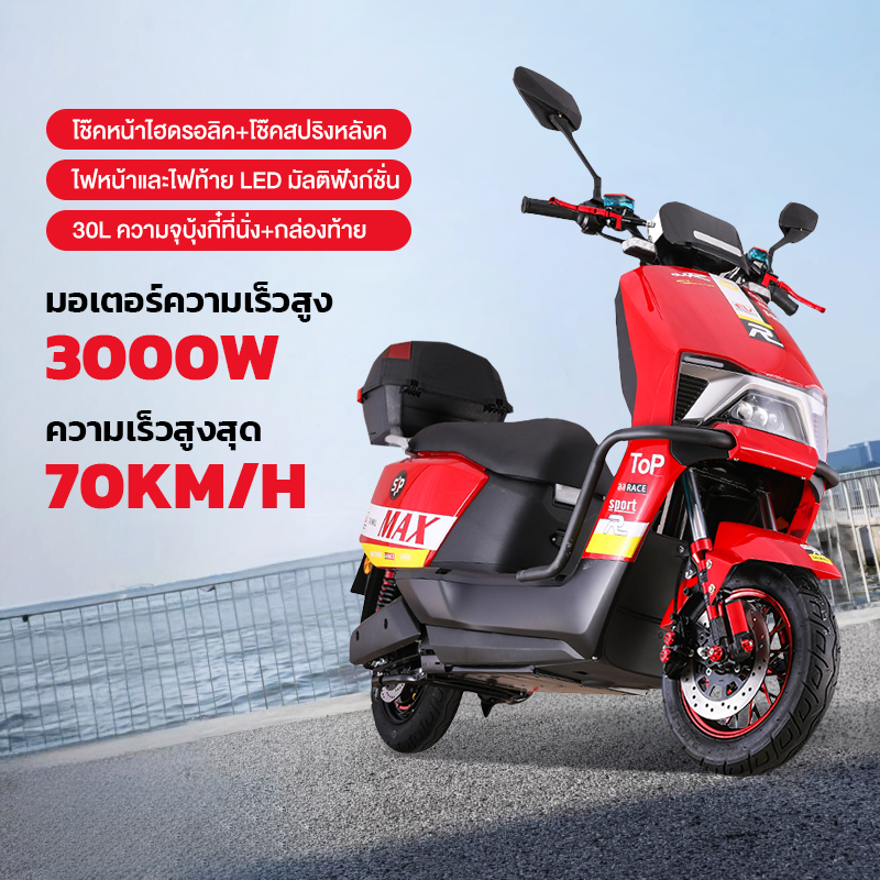 【2024 ใหม่ล่าสุด】ZSUN มอเตอร์ 3000W รถมอเตอร์ไซต์ไฟฟ้าความเร็วสูง 70-90km/h แบตเตอรี่CHILWEE 72V20Aนำเข้า ความทนทาน 60KM