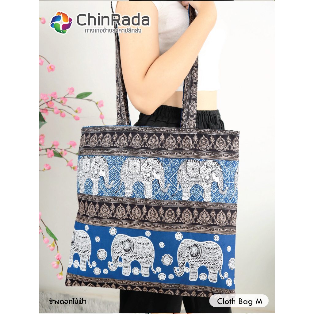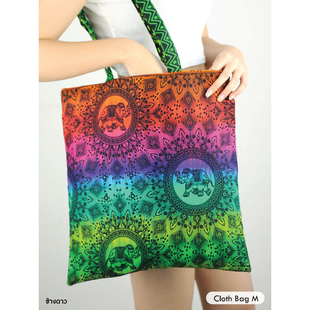 ️กระเป๋าถุงผ้าลายช้าง Cloth Bag M ลวดลายไม่ซ้ำใคร กระเป๋าซิป ใบใหญ่ ใส่ของได้เยอะ พร้อมส่งจากไทย