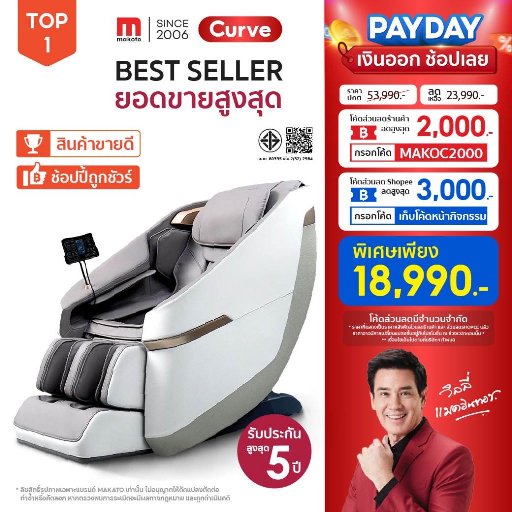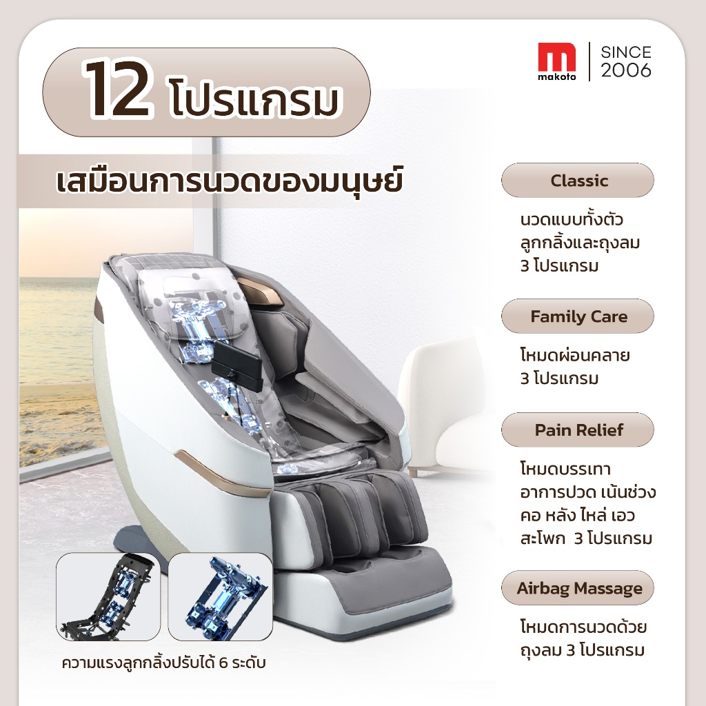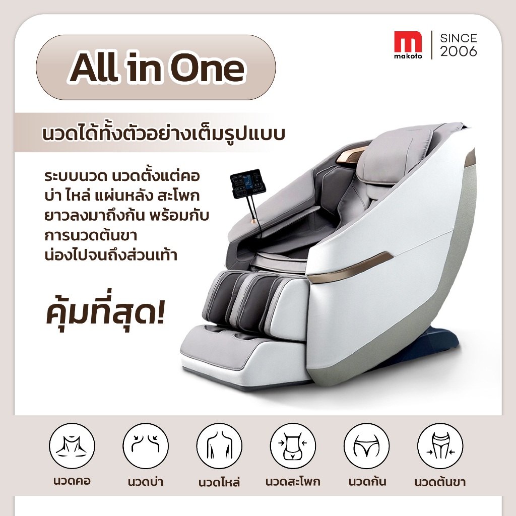 𝐌𝐀𝐊𝐎𝐓𝐎 เก้าอี้นวด เก้าอี้นวดไฟฟ้า รุ่น Curve มาพร้อมโปรแกรมอัตโนมัติมากถึง 12 โปรแกรมการนวด สีเทา