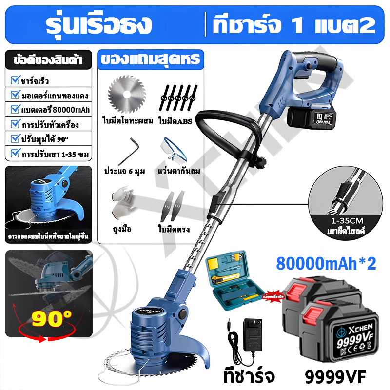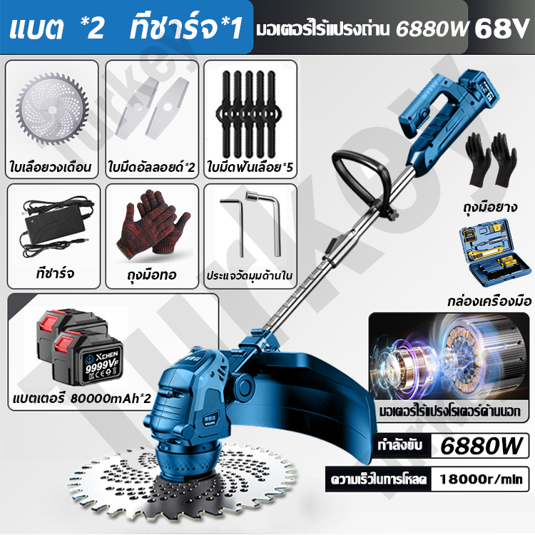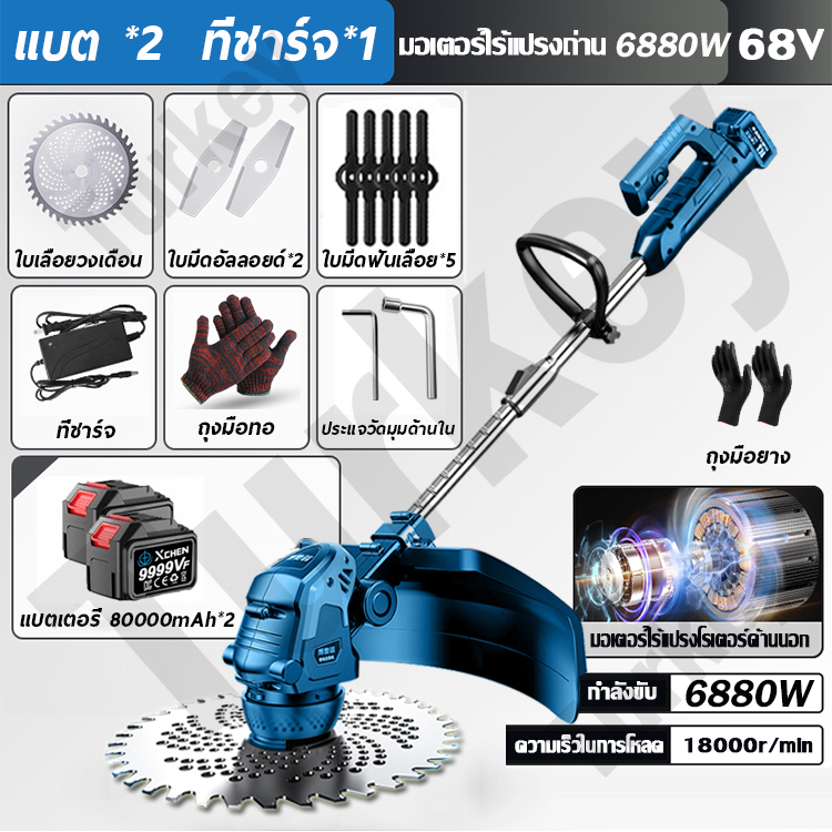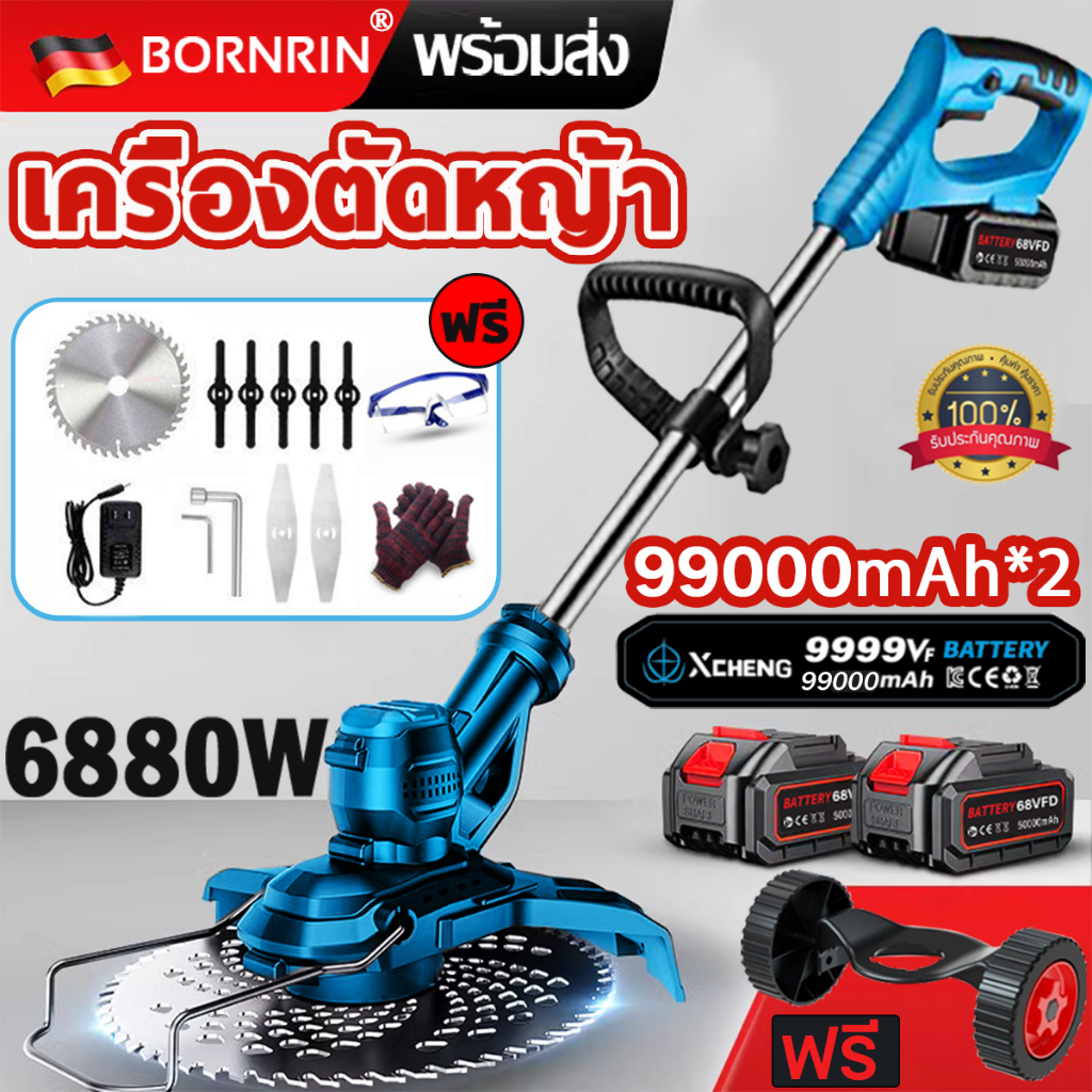 🌿99000Mah*2🌿 6880W BORNRIN 68V เครื่องตัดหญ้า แบตเตอรี่ลิเธียมความจุสูง ส่งออกในวันเดียวกัน รับประกัน1ปี