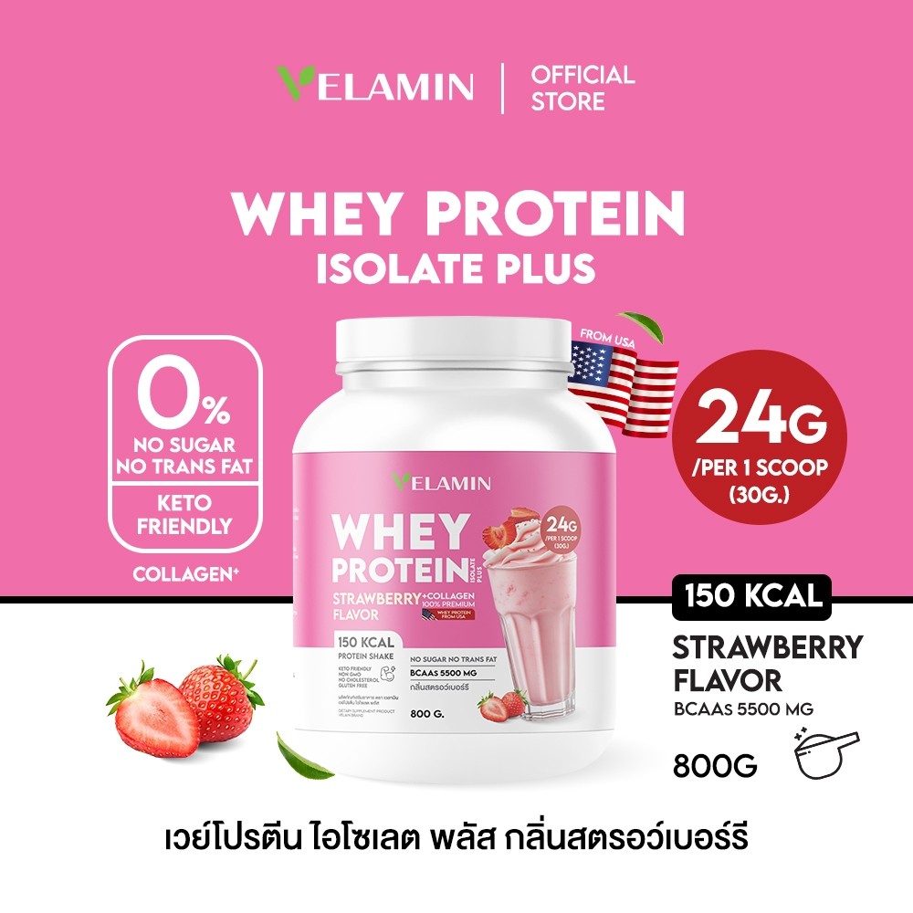 🍀Velamin(เวลามิน) --Whey Protein รสสตรอว์เบอร์รี่ 800g | หอม เข้มข้น ช่วยเสริมสร้าง ฟื้นฟูและซ่อมแซมกล้ามเนื้อ หลังออกกำ
