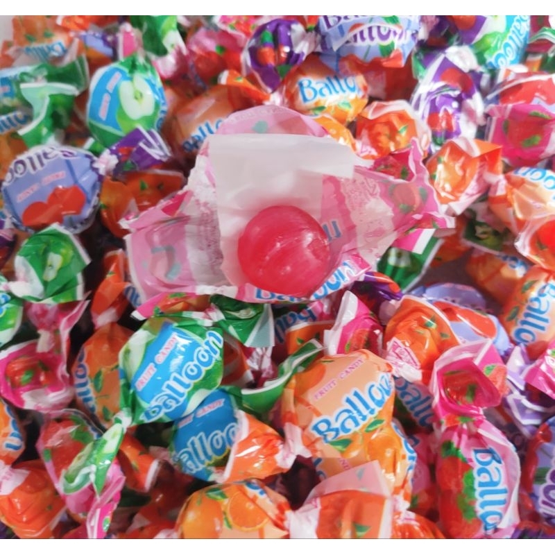 🍬ลูกอมบอลลูนฟรุตตี้🍇 รสผลไม้รวม🍎เม็ดใหญ่เต็มคำ➡️ได้เยอะ 💥สุดคุ้ม 150กรัม