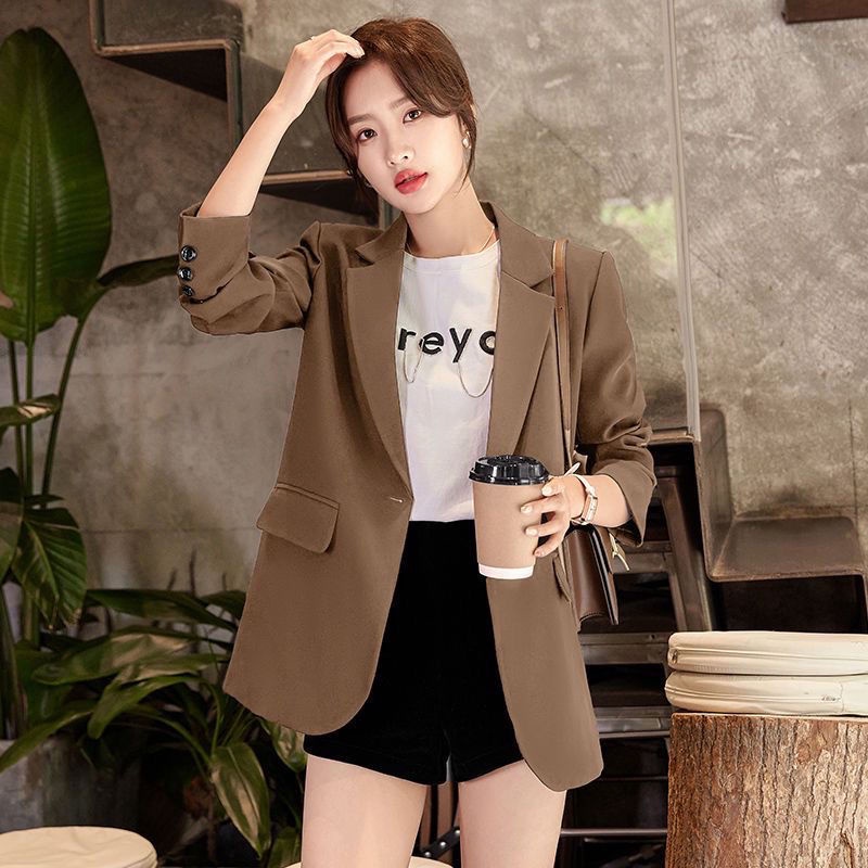 🎨น้ำตาล / ดํา 👗 แจ็คเก็ตสูทผู้หญิง แขนยาว สไตล์เกาหลี เนื้อผ้ามีซับใน💥ไซส์ S-3XL