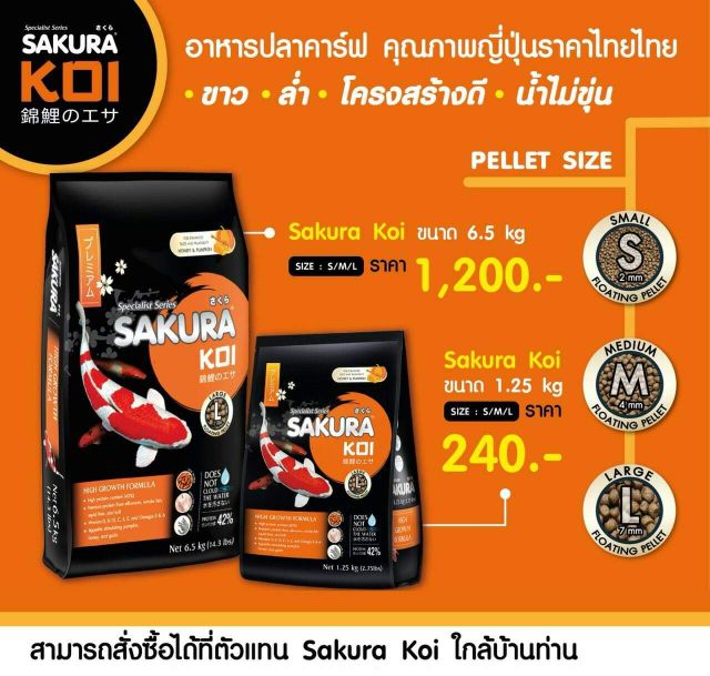 อาหารปลาคาร์ฟ ซากุระโค่ย 4 ก.ก.Sakura Koi