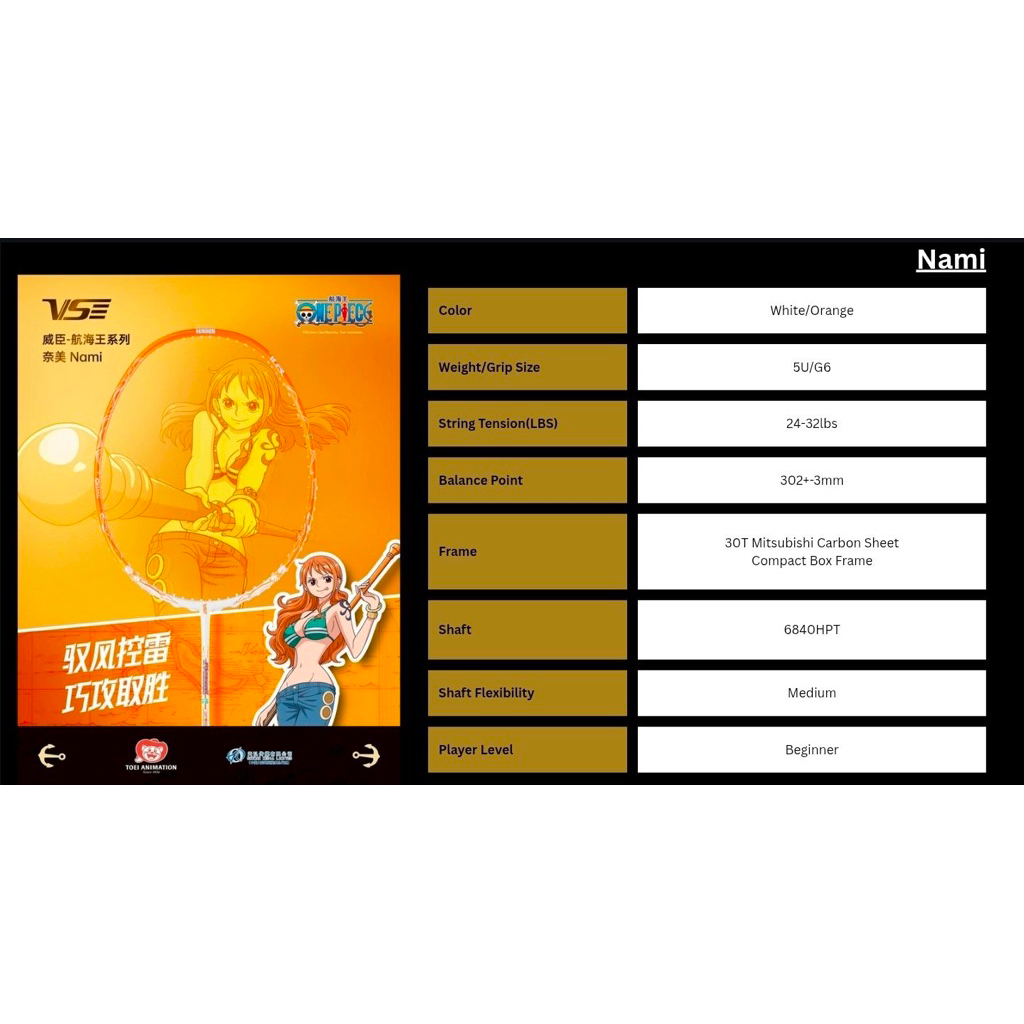 VS ONE PIECE NAMI 🏴☠️ไม้แบดมินตัน แถมถุงผ้า+เอ็นวันพีซรุ่นใหม่ ประกันศูนย์ไทย6เดือน(ลิขสิทธิ์แท้💯%)