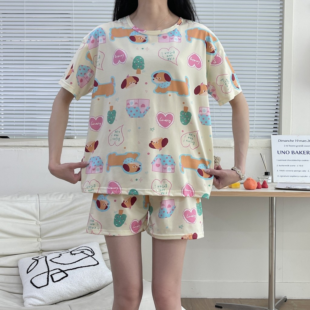 SUNBALEE 🐾 P ชุดนอนน่ารัก ผ้าคอตตอน แขนขาสั้นคอกลม FREE SIZE ชุดนอนแขน-ขาสั้น สินค้าพร้อมส่ง