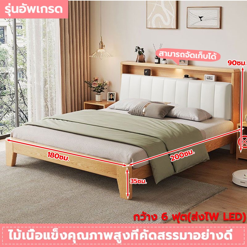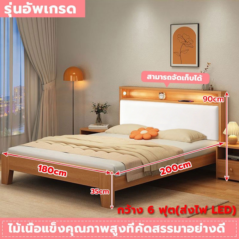 💎เตียงไม้เนื้อแข็ง5/6 ฟุต เรียบง่าย ทันสมัย ข้างเตียงนุ่ม แข็งแรงทนทาน อายุการใช้งานอย่างน้อย20ปี👏