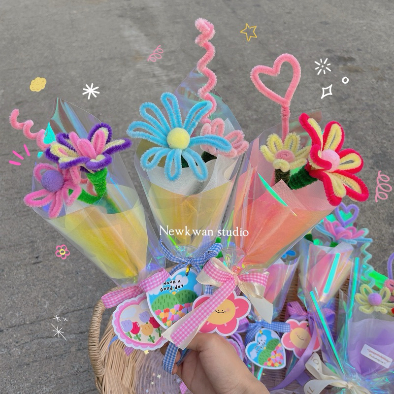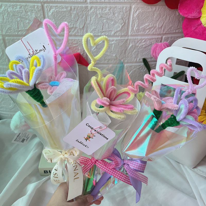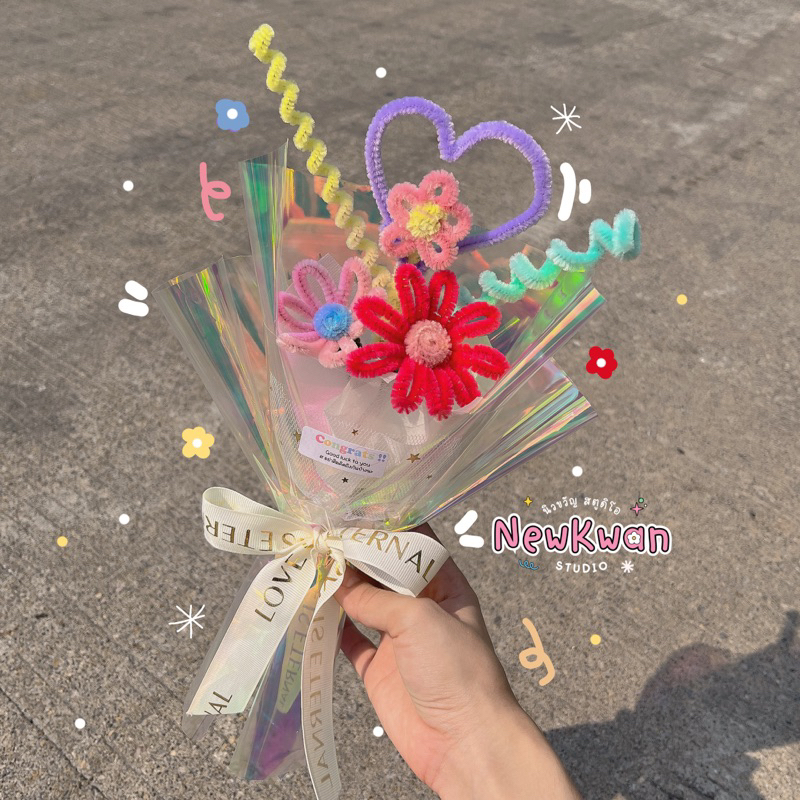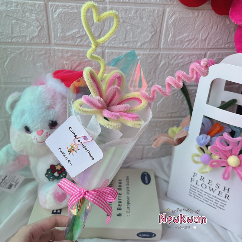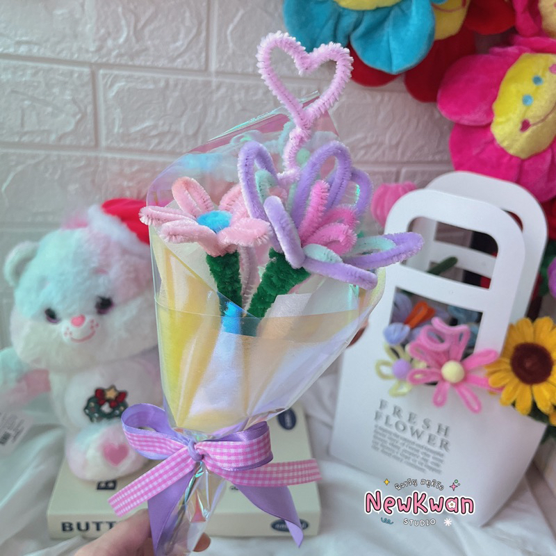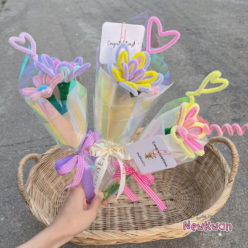 💐ช่อดอกไม้ลวดกำมะหยี่ 🌟จัดช่อสำเร็จรูป พร้อมส่ง❗️ By Newkwan Studio