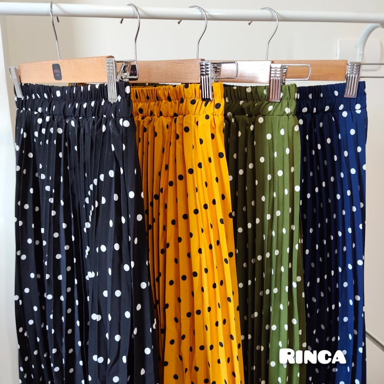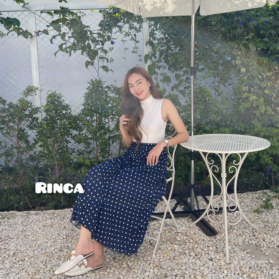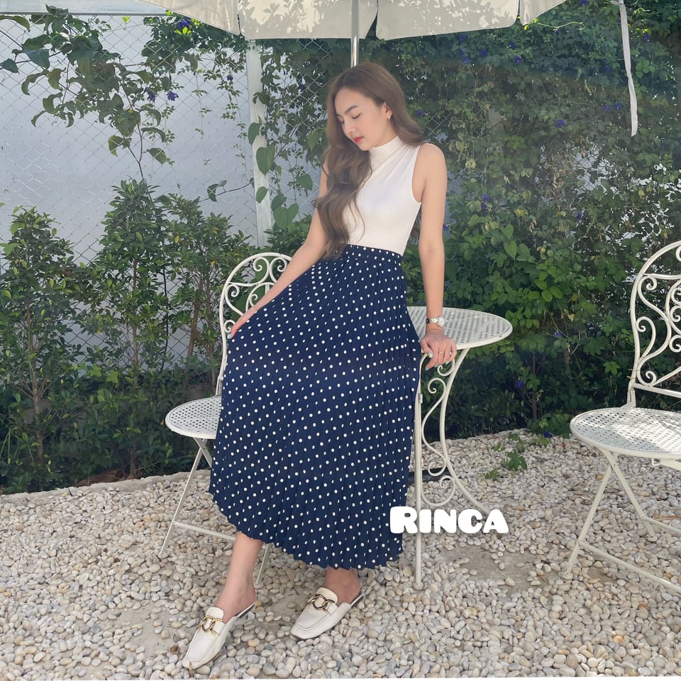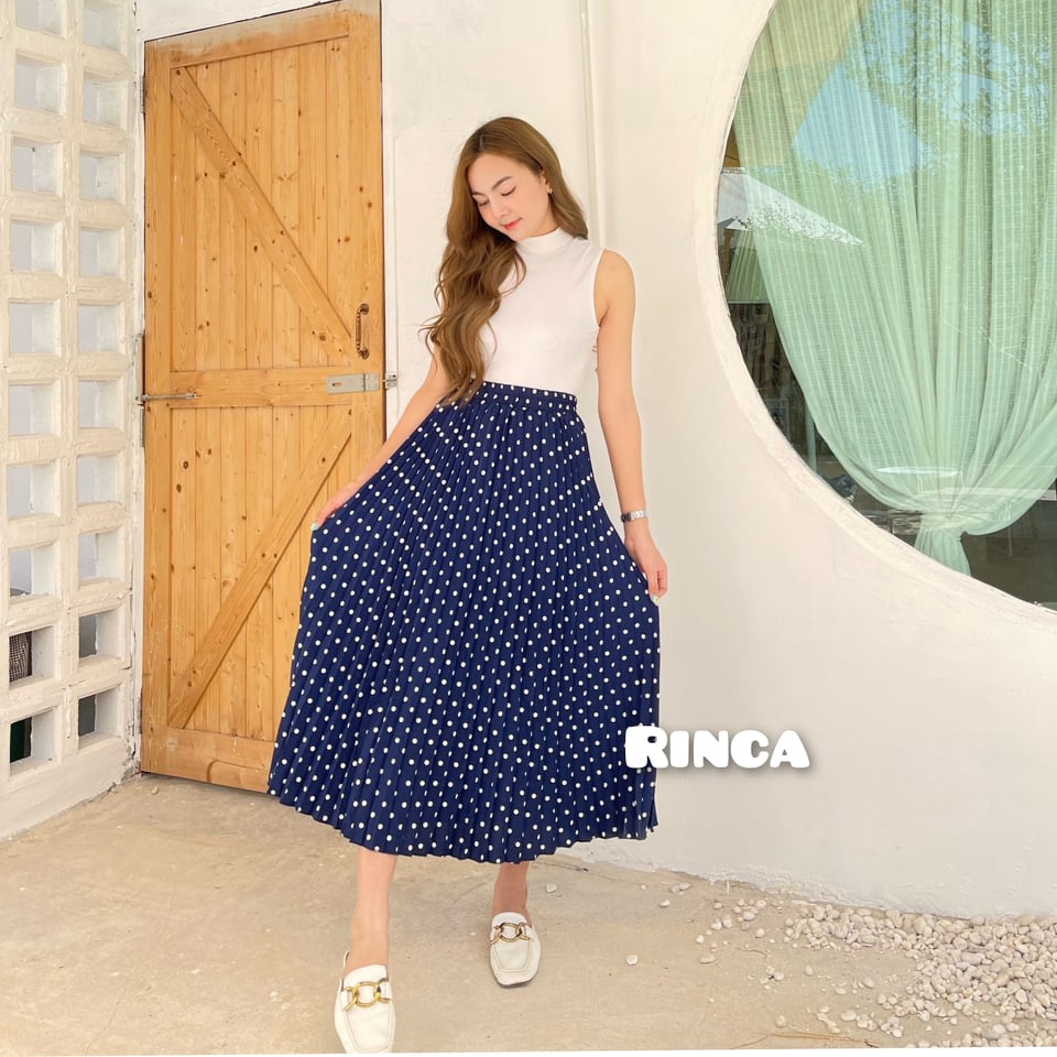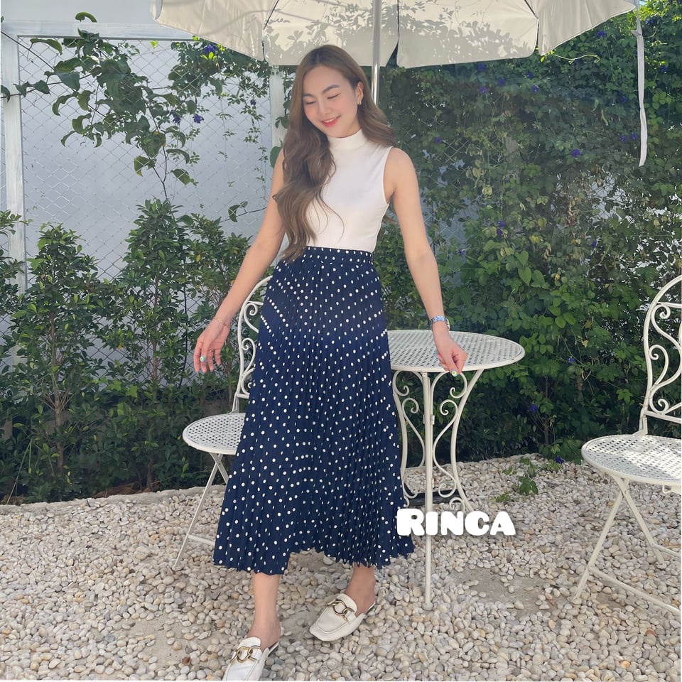 🍒11.11🍒🎀RINCA🎀<เอว 24-30">กระโปรงพลีทยาว ลายจุด สวยหวานน่ารัก