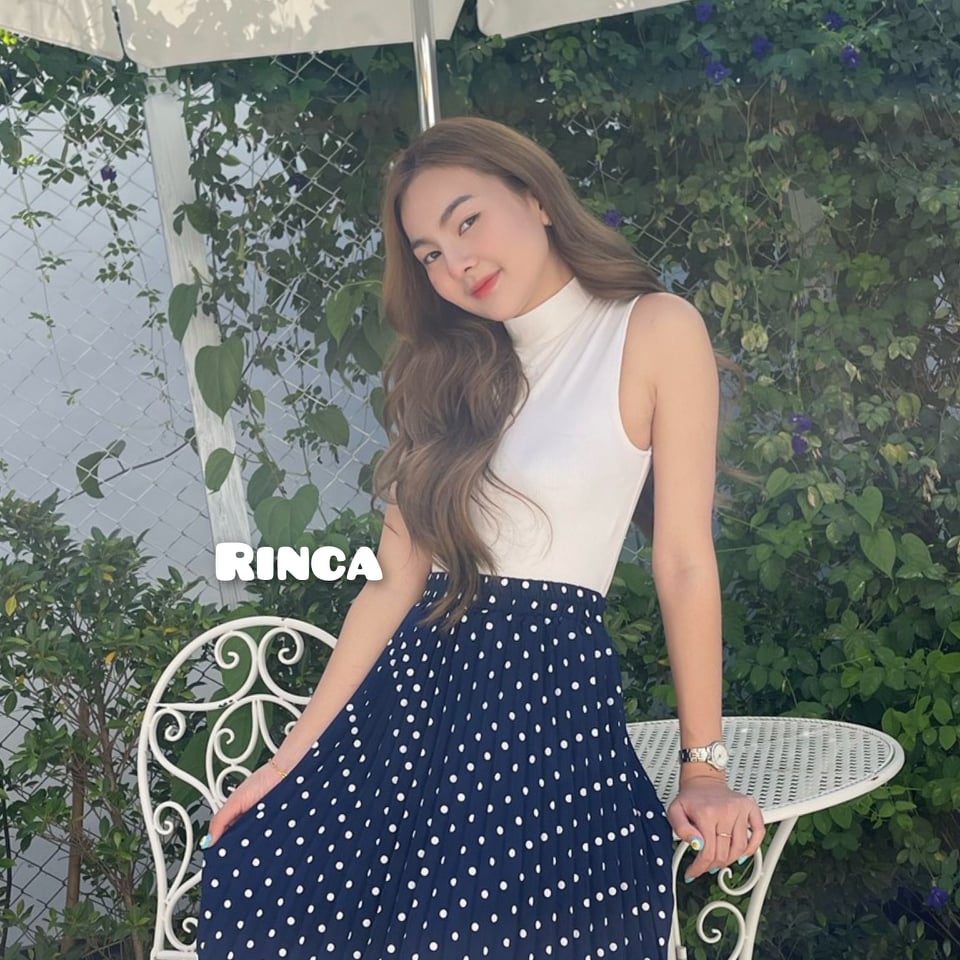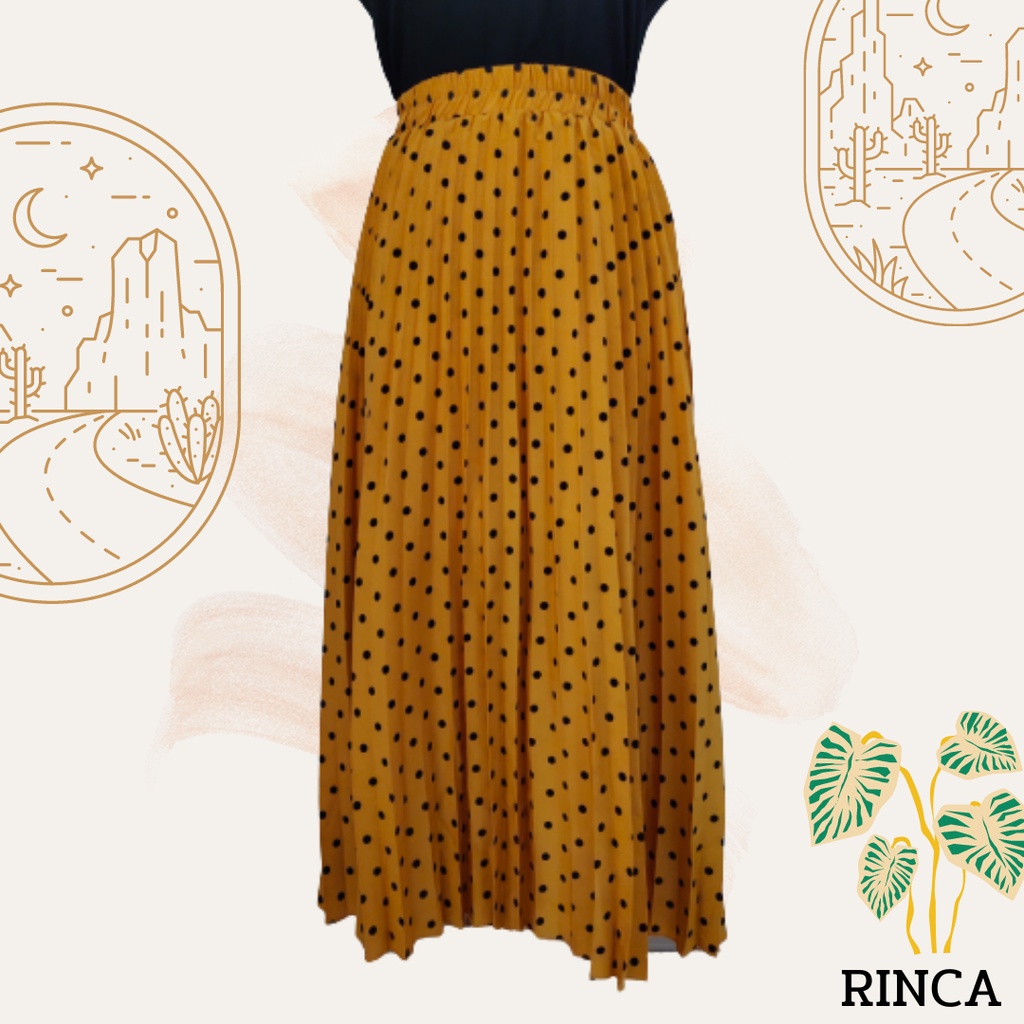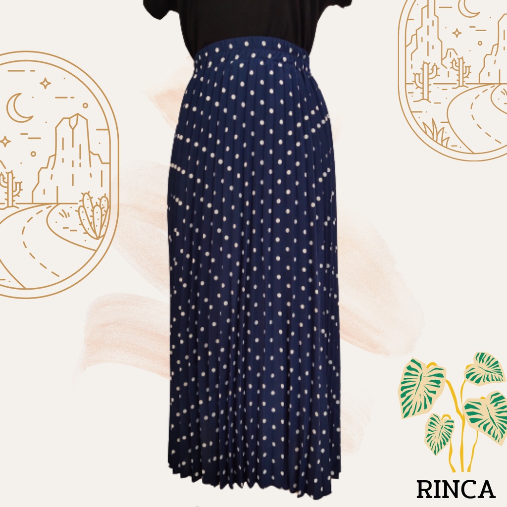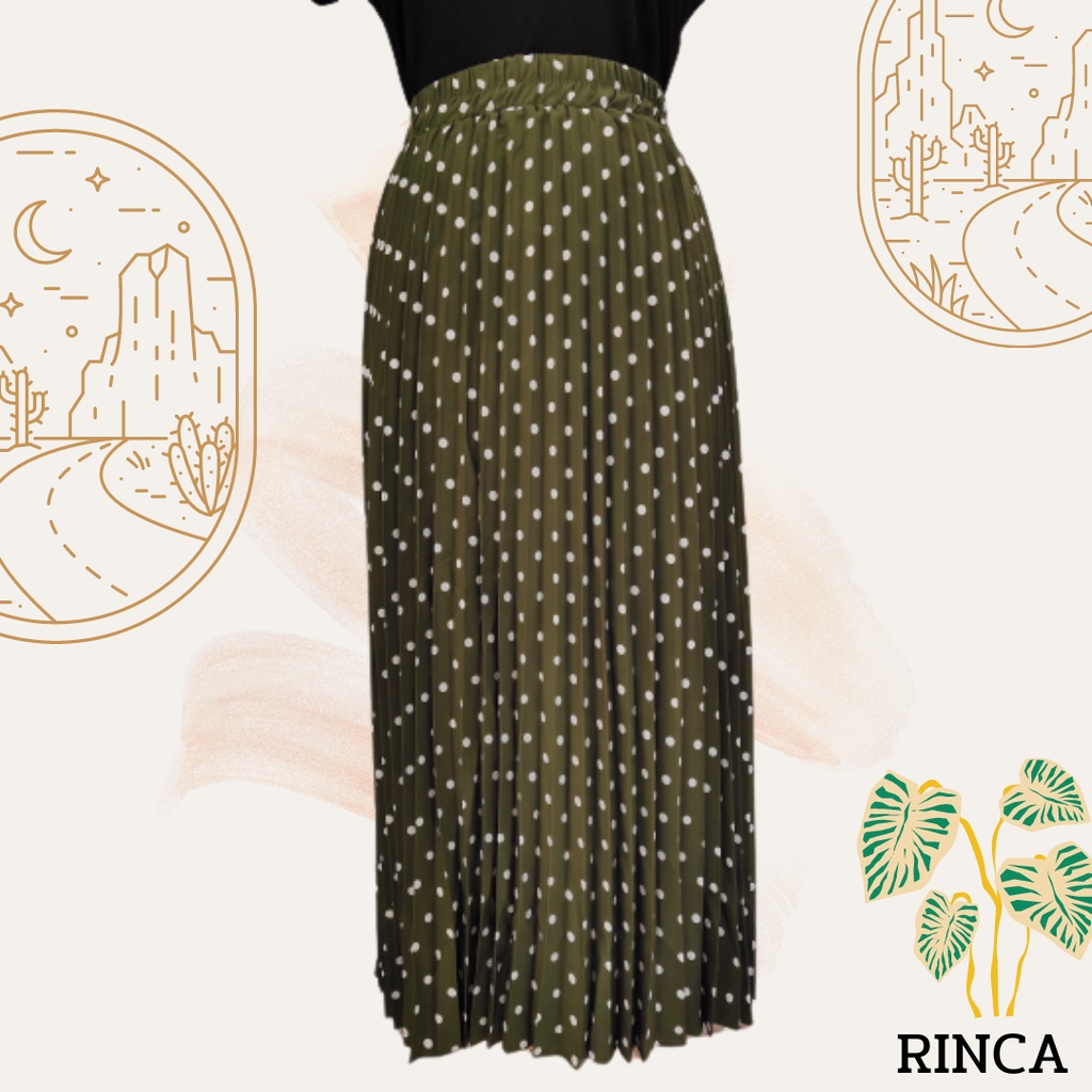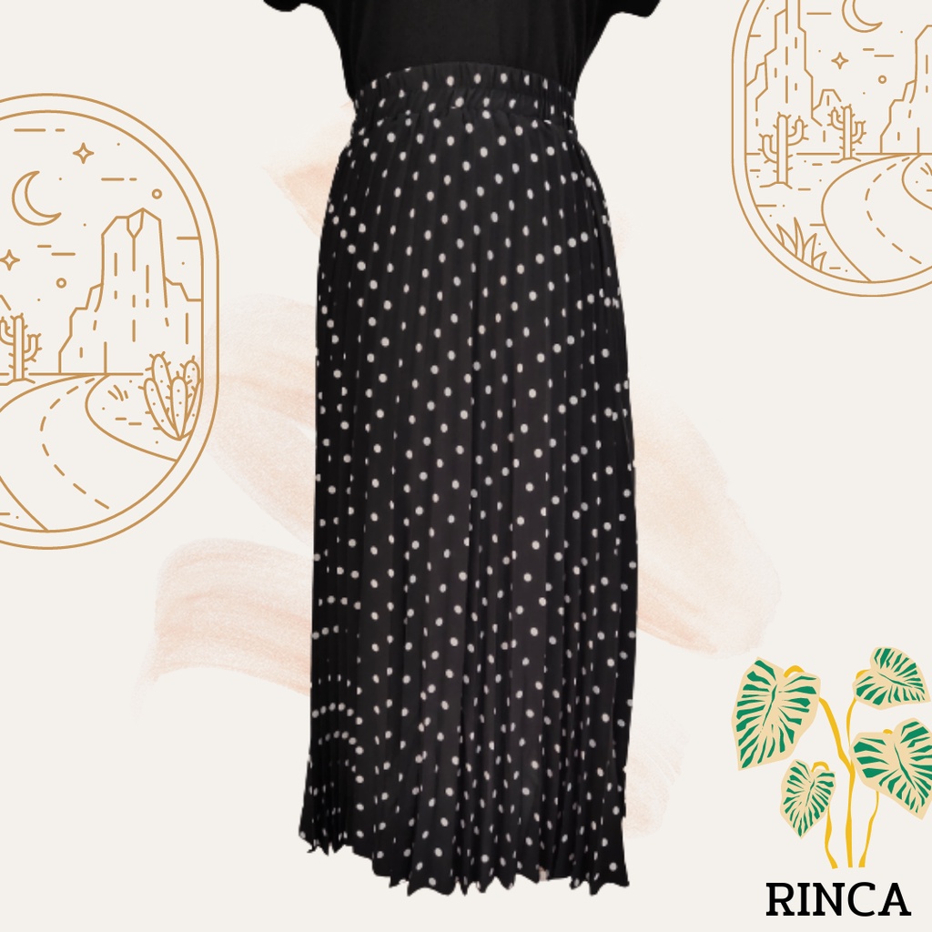🍒11.11🍒🎀RINCA🎀<เอว 24-30">กระโปรงพลีทยาว ลายจุด สวยหวานน่ารัก