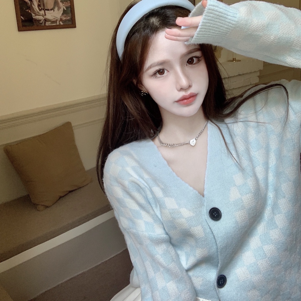 💠คาร์ดิแกนลายสก็อตแต่งด้วยกระดุมดำ สีจะออกโทนฟ้าพาสเทลอ่อน เสื้อคลุม เสื้อคาร์ดิแกน คาดิแกน คาร์ดิแกน เสื้อคลุมผญ