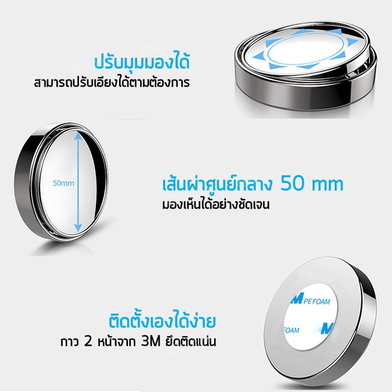 🔥กระจกจุดบอด🔥กระจกมองหลังรถยนต์ เลนส์มุมกว้าง เลนส์กระจกรถยนต์ กระจกเสริมปรับมุมได้ 360 องศา (1 ชิ้น)