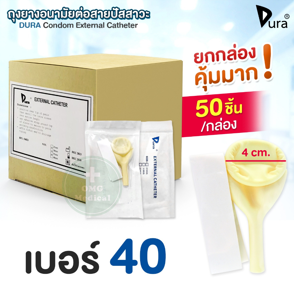 🔥ขายส่ง🔥DURA ถุงยางอนามัย ต่อสายปัสสาวะ Condom External Catheter เบอร์ 25, 30, 35, 40 mm (ยกกล่อง 50 ชิ้น)