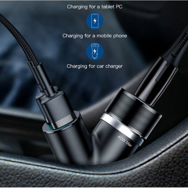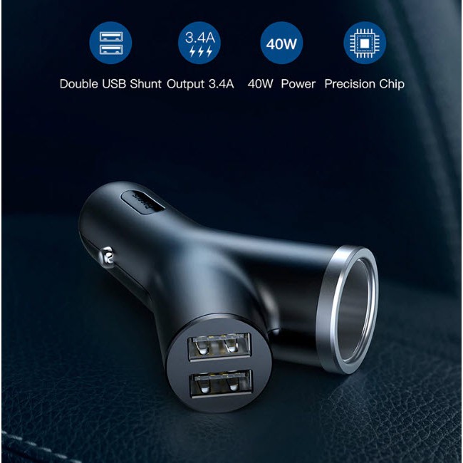 🔥ถูก/แท้🔥Baseus 2in1 ที่ชาร์จในรถ 3.4A USB 2 Port พร้อม ช่องจุดบุหรี่ในรถยนต์ MAX 40W