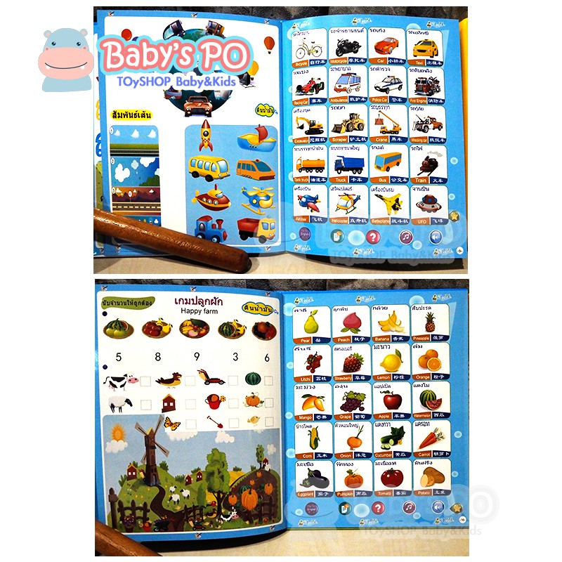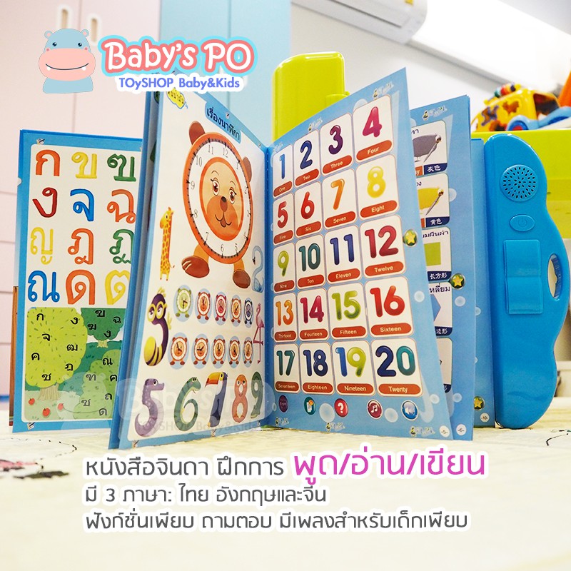 SALE2.2🔥 หนังสือจินดา หนังสือพูดได้ หนังสือจินดาพูดได้ 3 ภาษา มีภาพและเสียงไทย จีน อังกฤษ มีปากกาเขียน-ลบ เสริมทักษะ