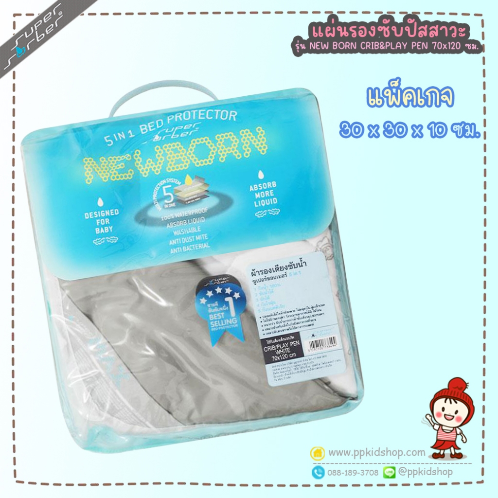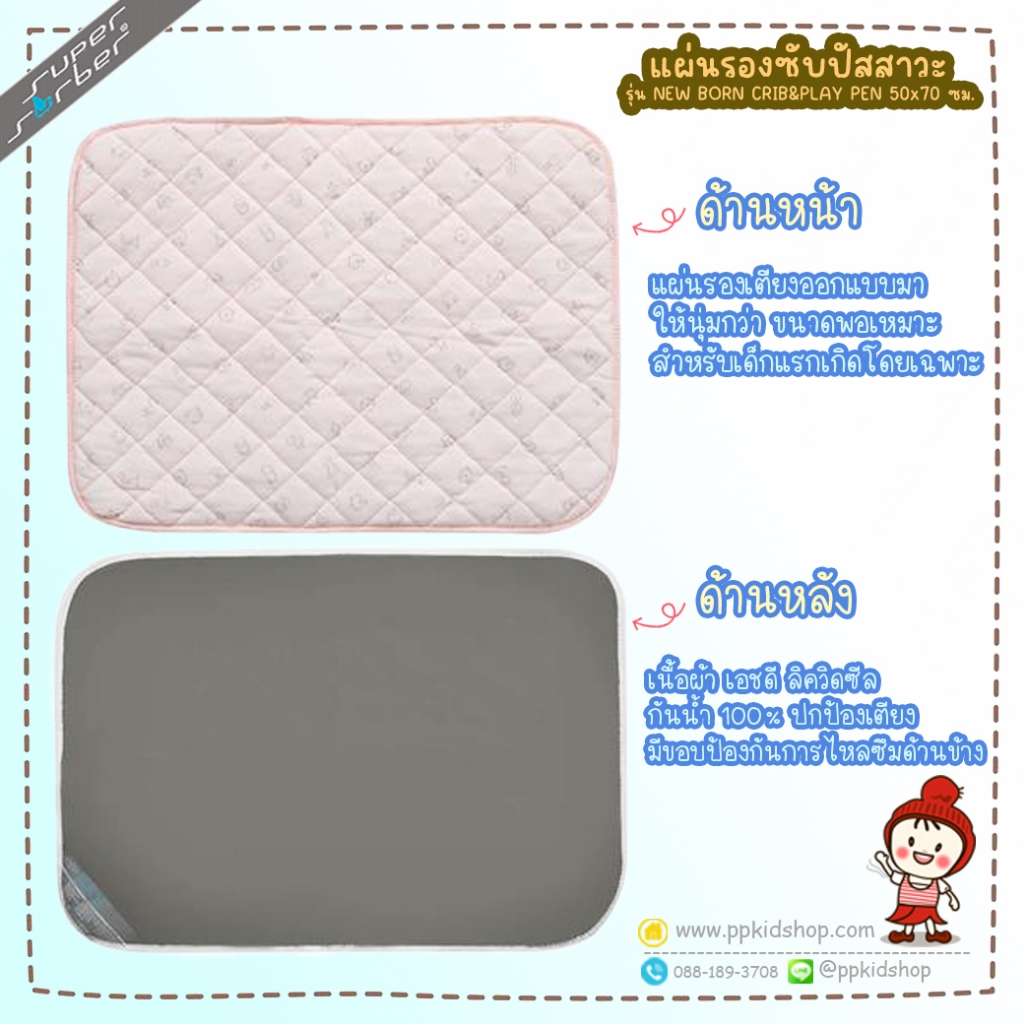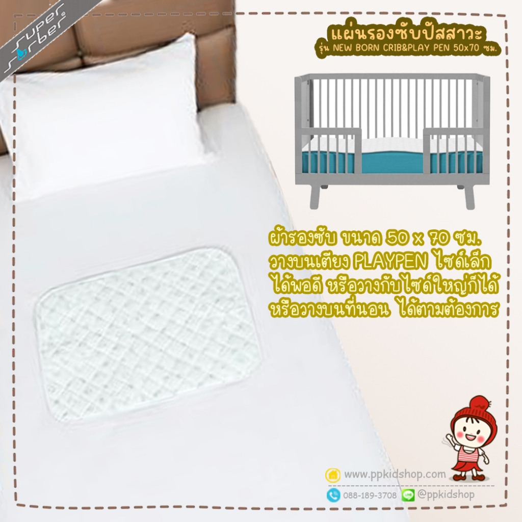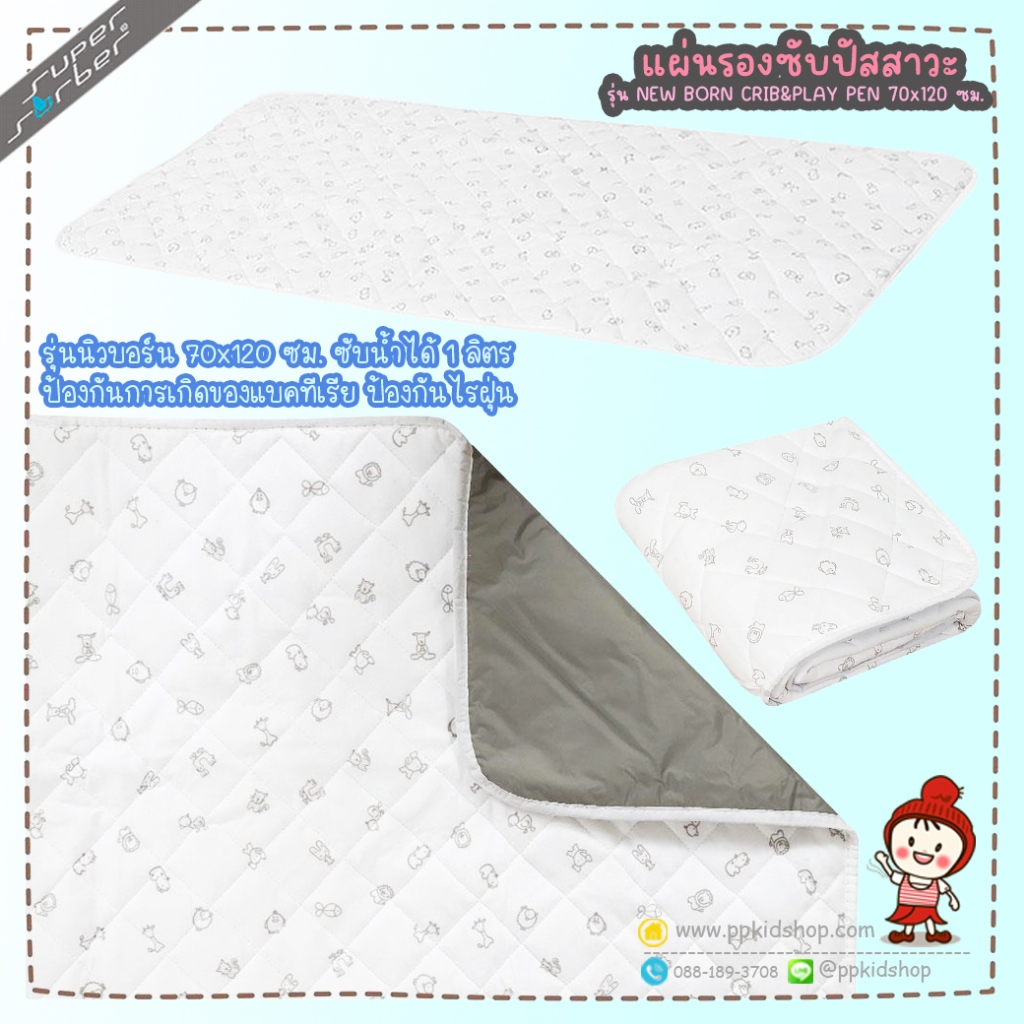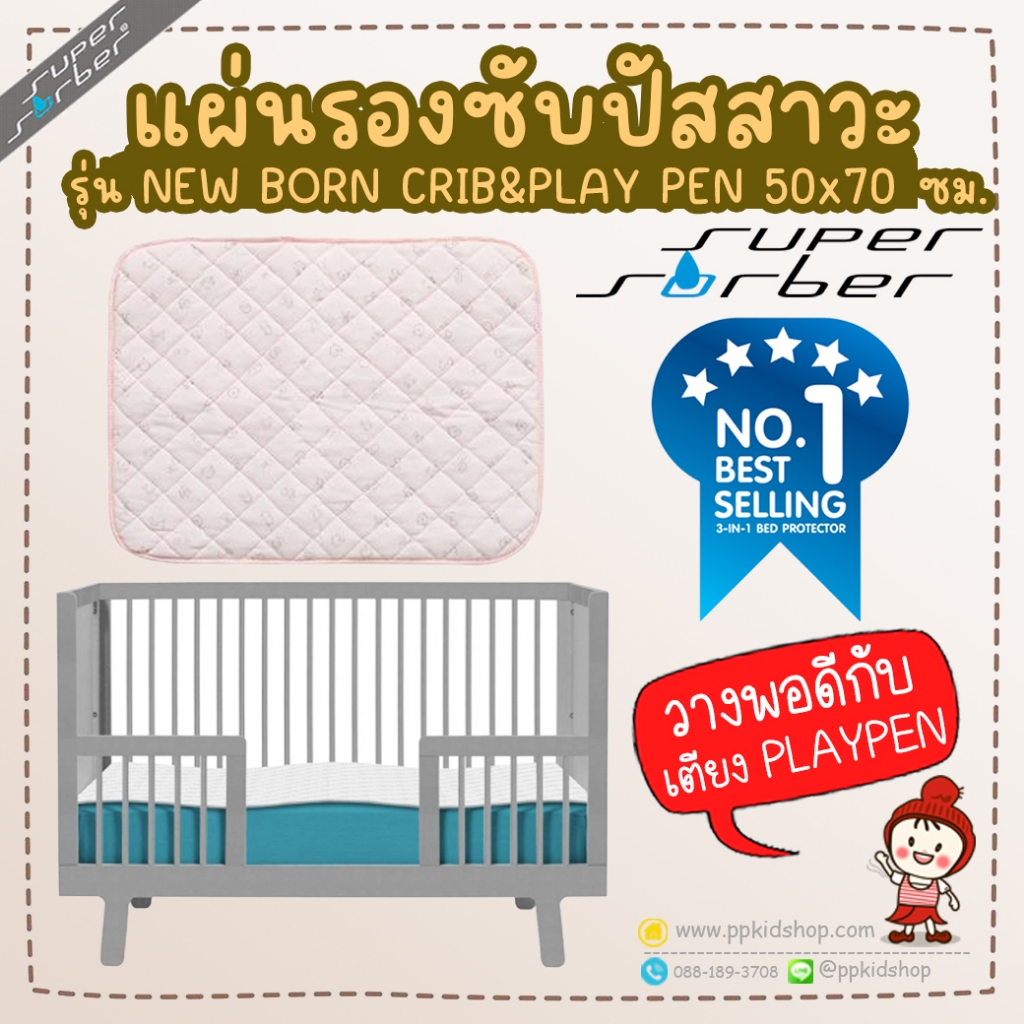 🔥ลดแรง🔥 ผ้ารองซับน้ำ กันเปื้อน รุ่น NEW BORN สำหรับวางบน PLAYPEN หรือ เตียงนอน ยี่ห้อ SUPERSORBER