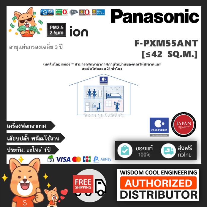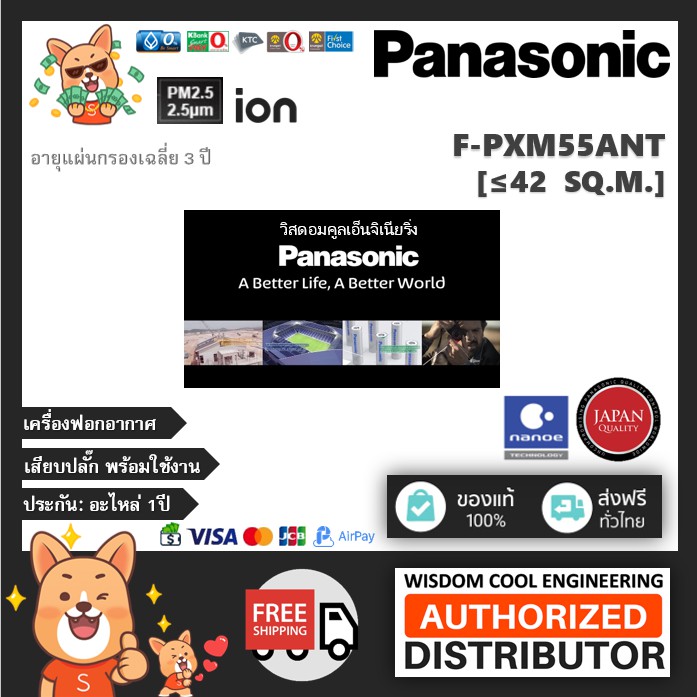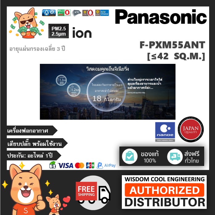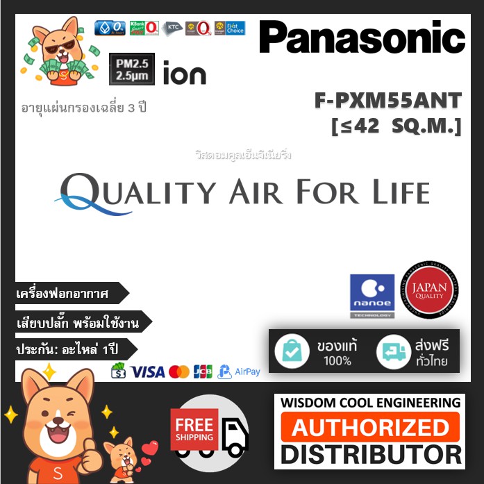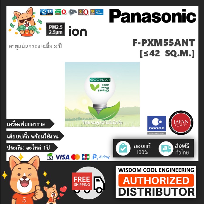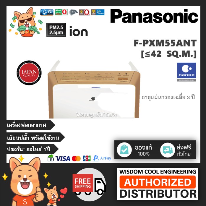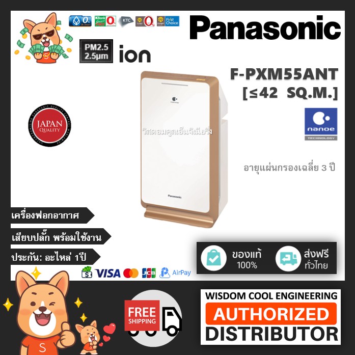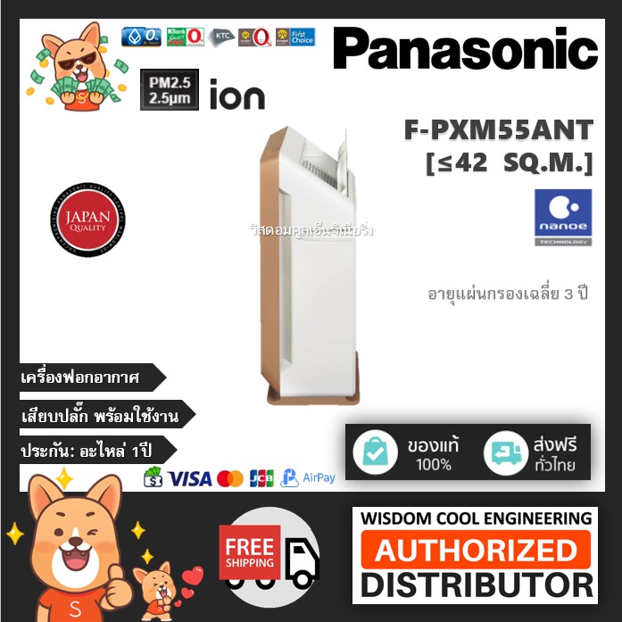 🔥 เครื่องฟอกอากาศพานาโซนิค (Panasonic) รุ่น F-PXM55ANT *ขนาดพื้นที่42ตร.ม.*แผ่นกรองฝุ่นHEPA + nanoeTM