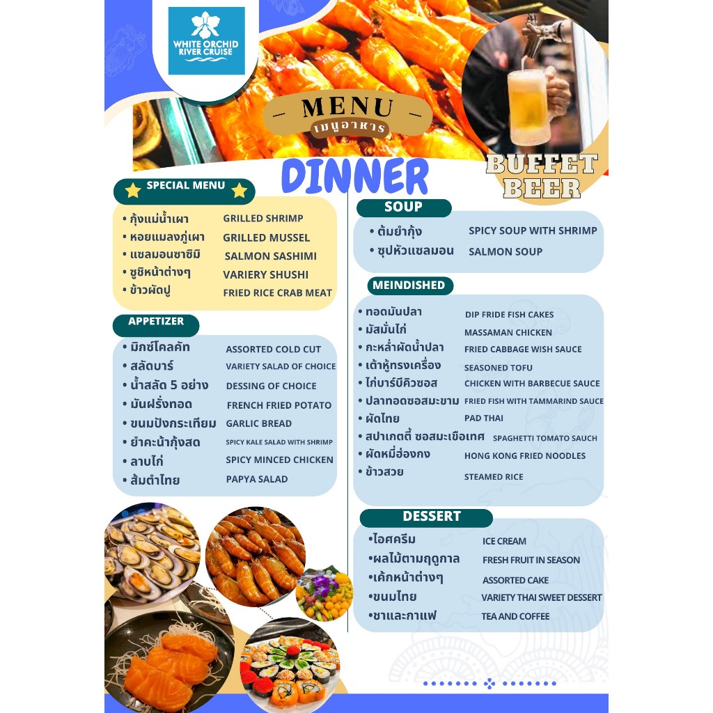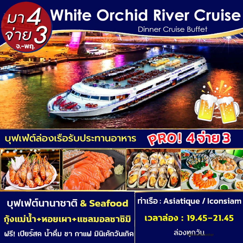 🔴 โปร! 4 จ่าย 3 + ฟรี! เบียร์สดไม่อั้น Free Beer บุฟเฟ่ต์ล่องเรือ กับ White Orchid River Cruise Dinner Buffet