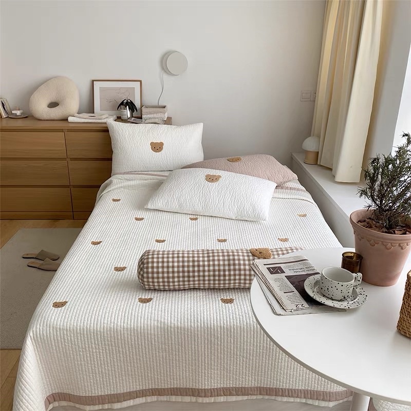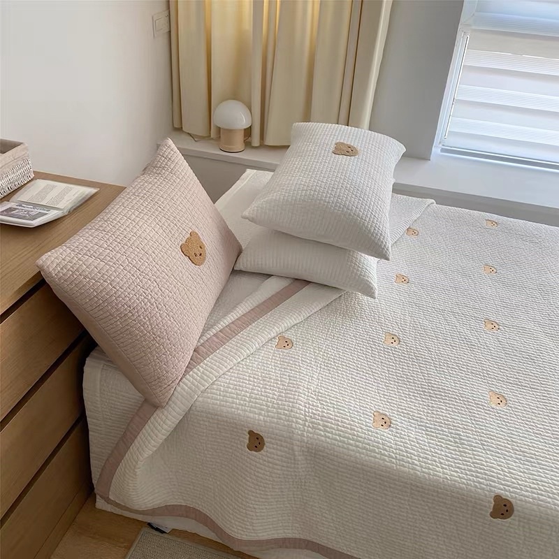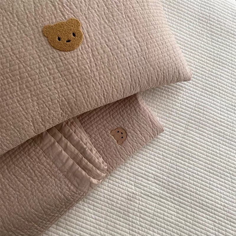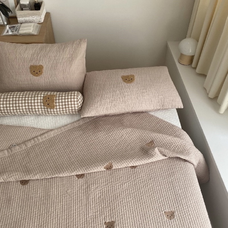 🧸ชุดผ้าปูที่นอนลายหมี(งานปักพรีเมี่ยม) ผ้าคลุมเตียง ผ้าห่มลายหมี ที่นอนเด็ก ผ้าห่มเด็กเล็ก🛏