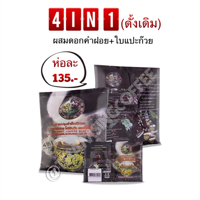 กาแฟถ้ำสิงห์ 4in1(ดั้งเดิม) ผสมดอกคำฝอย+ใบแปะก๊วย