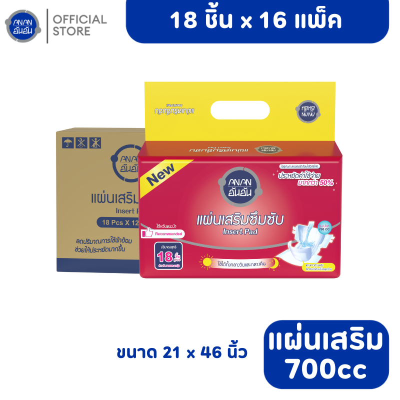 (ขายยกลัง) Anan แผ่นเสริมซึมซับอันอัน18ชิ้นx16แพ็ค ซึมซับ 700CC Insert pad #C78819