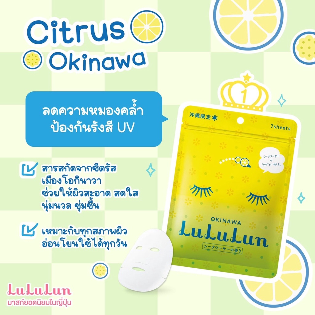 (ซอง 7 แผ่น) LuLuLun Premium Okinawa Citrus Face Mask ลูลูลูน แผ่นมาสก์ ผิวกระจ่างใส ป้องกันรังสีUV ซีทรัส เมืองโอกินาวา