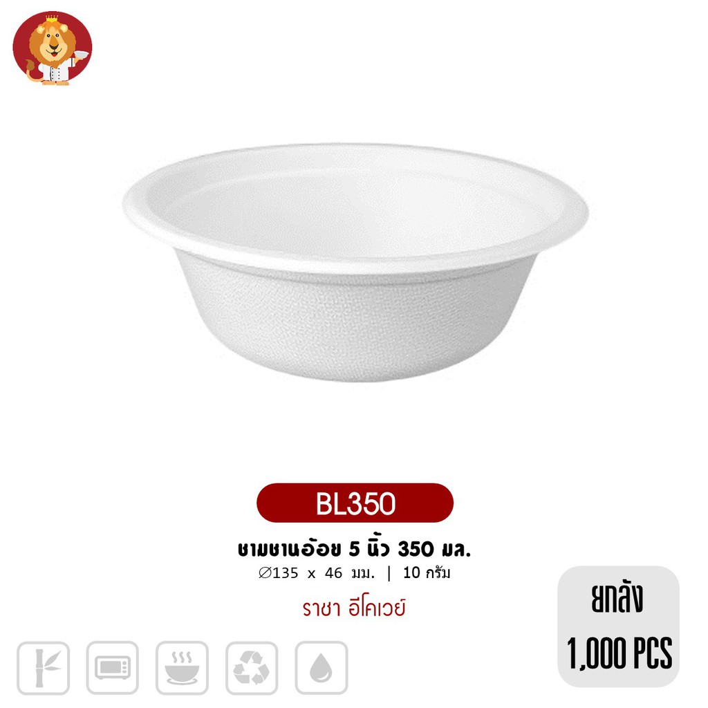 (ยกลัง 1,000 ชิ้น) ชามชานอ้อย 5 นิ้ว 350 มล. สีขาว [ BL350 ] แบรนด์ ราชา Ecoway