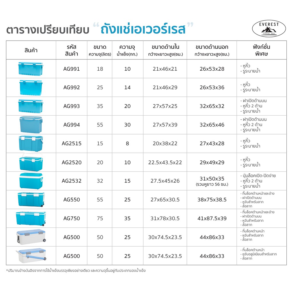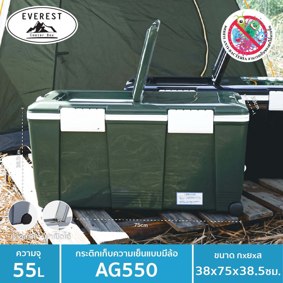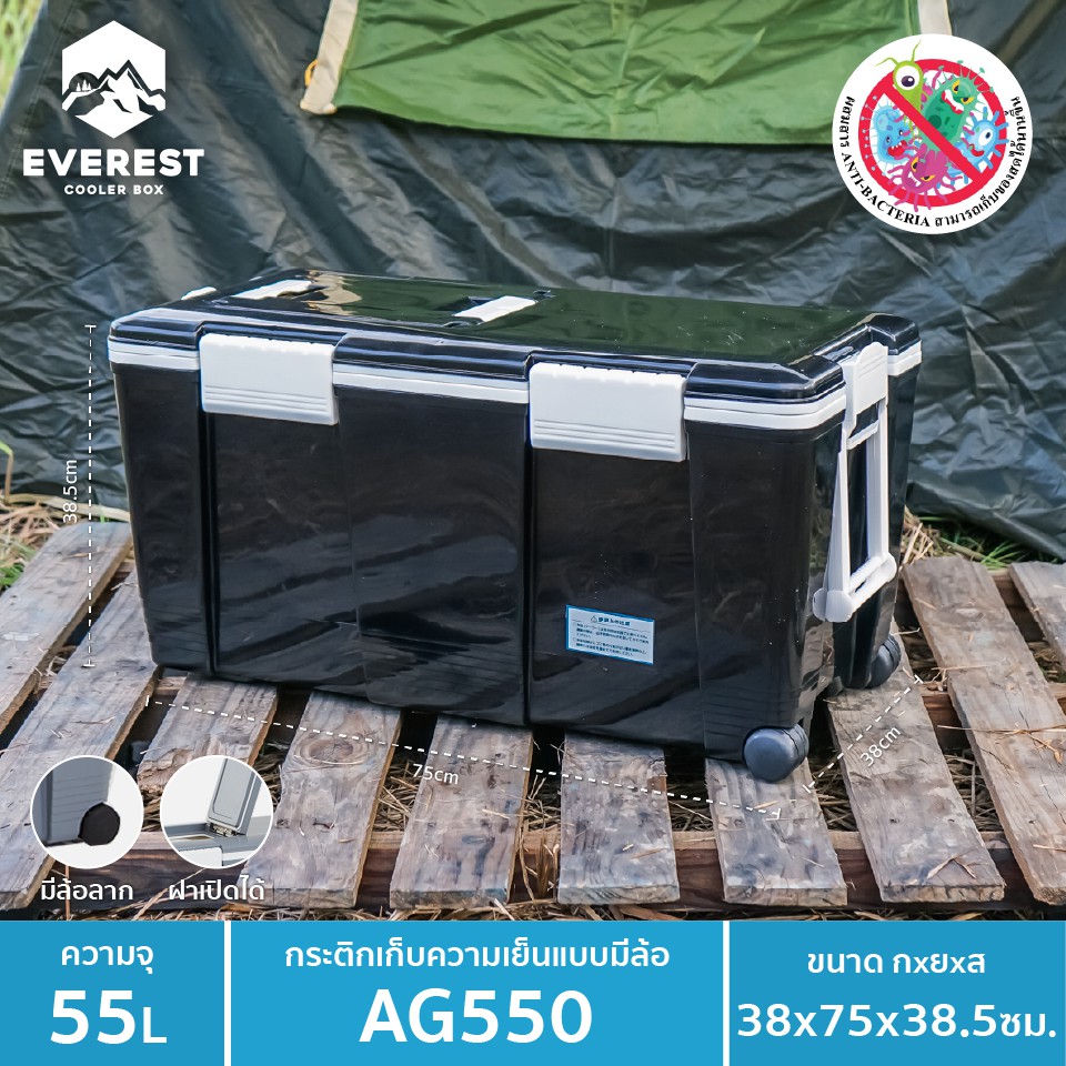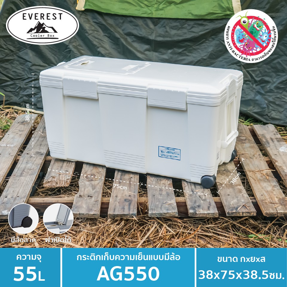 EVEREST กระต ิกน้ำแข็ง ถังแช่อเนกประสงค์พร้อมล้อลาก ขนาด 55 ลิตร รุ่น AG550
