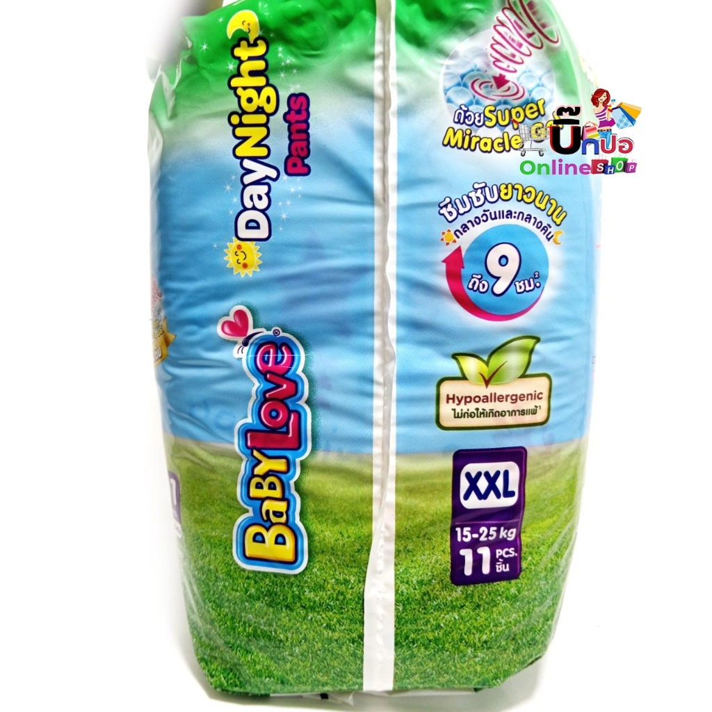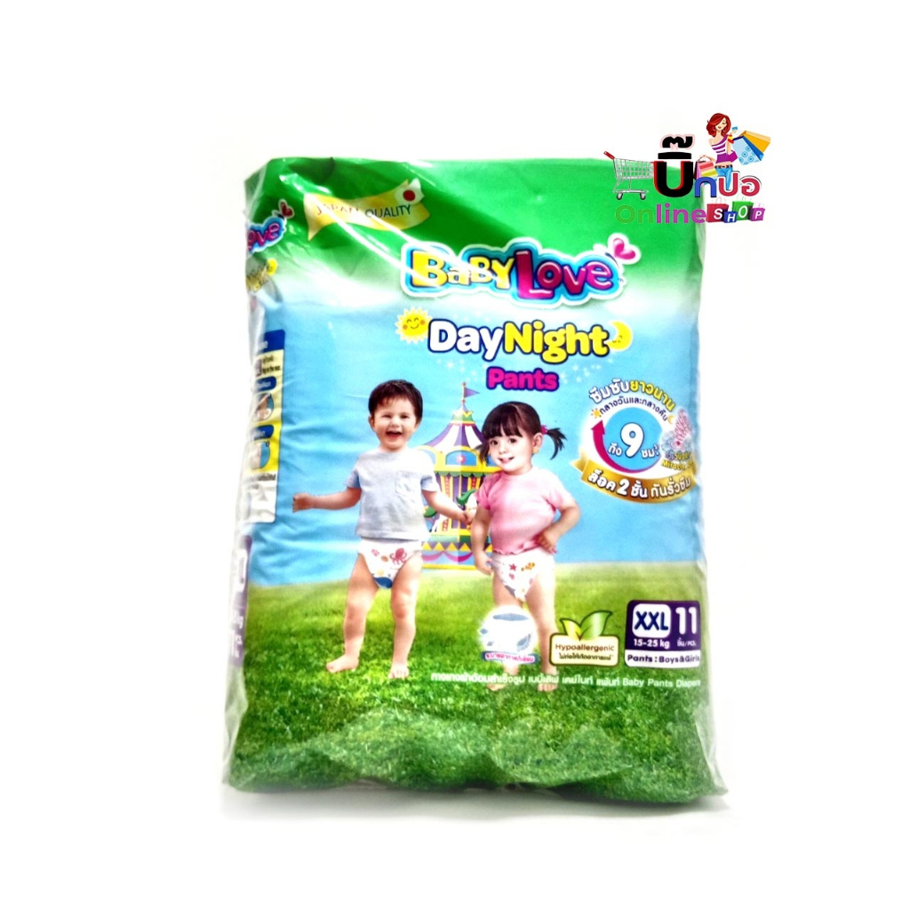 (สินค้าขายดี) พร้องส่ง เบบี้เลิฟเขียว เดย์&ไนท์แพ้นท์ XXL 11ชิ้น 1 ห่อ ผ้าอ้อมสำเร็จรูป Babylove