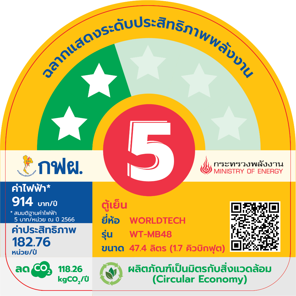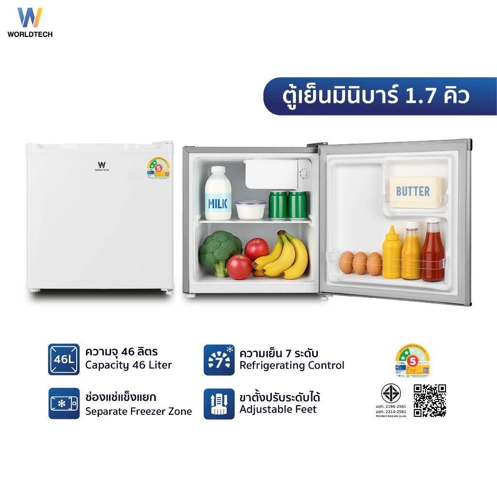 Worldtech ตู้เย็น มินิบาร์ 1.7 คิว ความจุ 46 ลิตร มอก. ประหยัดไฟเบอร์ 5 รับประกัน 3 ปี รุ่น WT-MB48