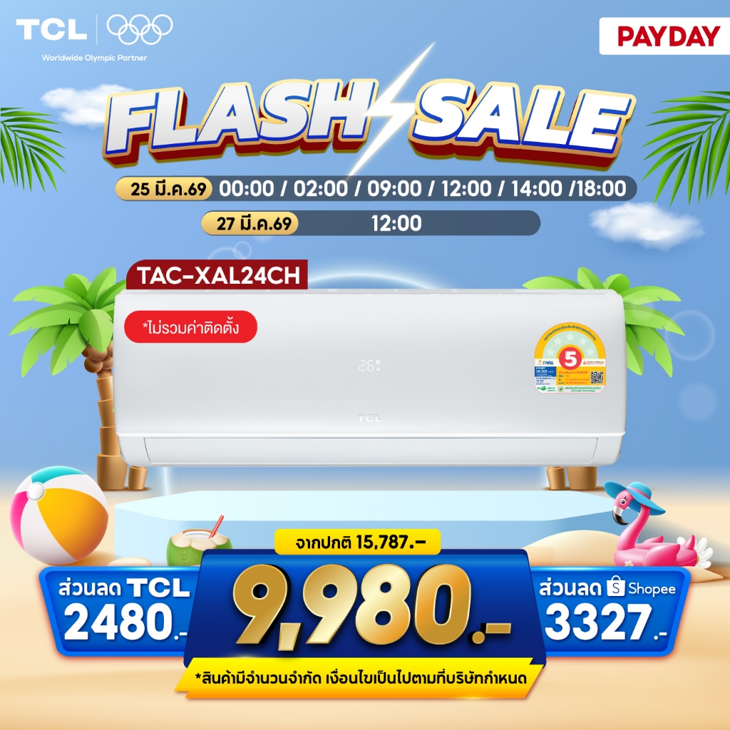 TCL แอร์ Inverter 9,490-24,130 BTU รุ่น TAC-XALCH เบอร์5 เย็นเร็ว ประหยัดไฟ ผ่อน0% รับประกันคอม 5 ปี