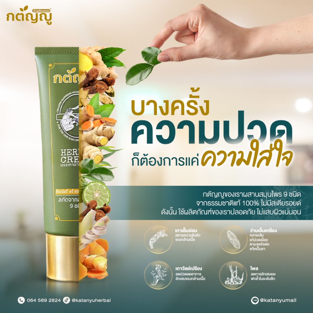(เซตสุขใจ) ครีมนวดสมุนไพร กตัญญู บรรเทาอาการปวดเมื่อยกล้ามเนื้อ ไม่แสบร้อนผิว ขนาด 20 และ 90 g