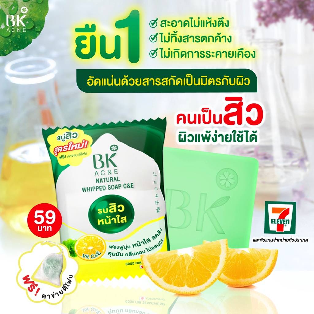 (แท้) BK Acne Natural Whipped Soap CE 60g บีเค แอคเน่ เนเชอรัล วิป โซป ซี แอนด์ อีสบู่วิตซี มะนาว ลดสิว