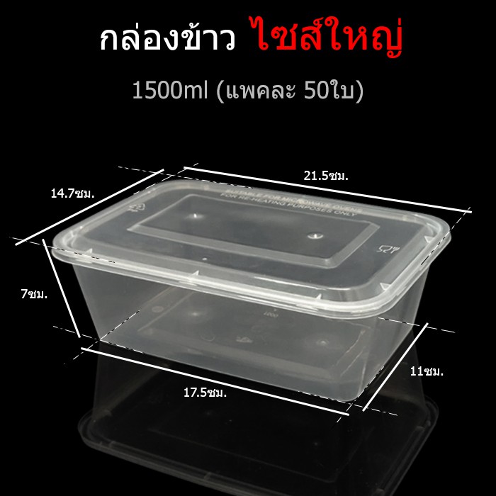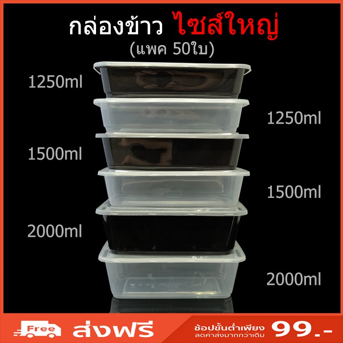(แพค50ใบ) กล่องข้าวไมโครเวฟช่องเดียวไซส์ใหญ่ กล่องข้าวช่องเดียว กล่องTake awayไซส์ใหญ่