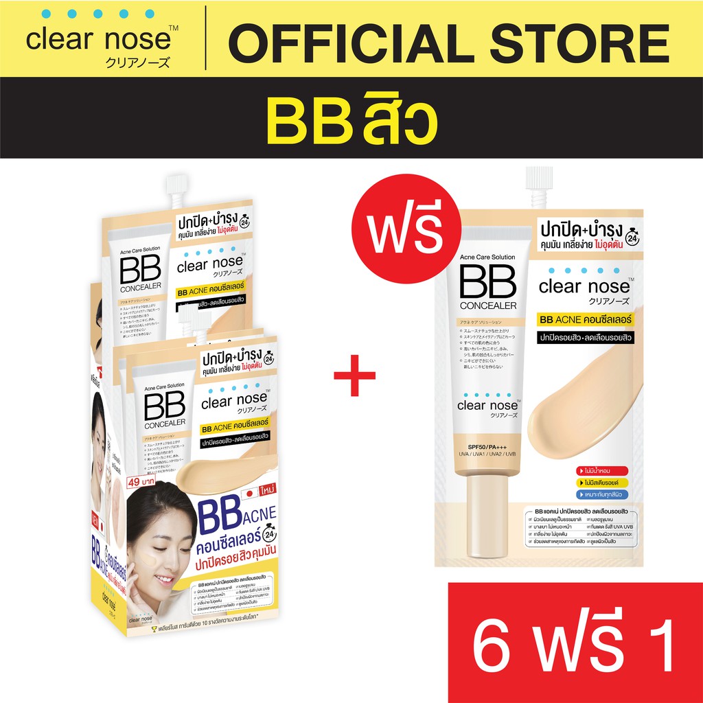 [โปรแรง]บีบีเคลียร์โนส Clear Nose BB สิว SPF50+ PA4+ แบบซอง x7ชิ้น ปกปิดดี ไม่อุดตัน (BBS 6+1)