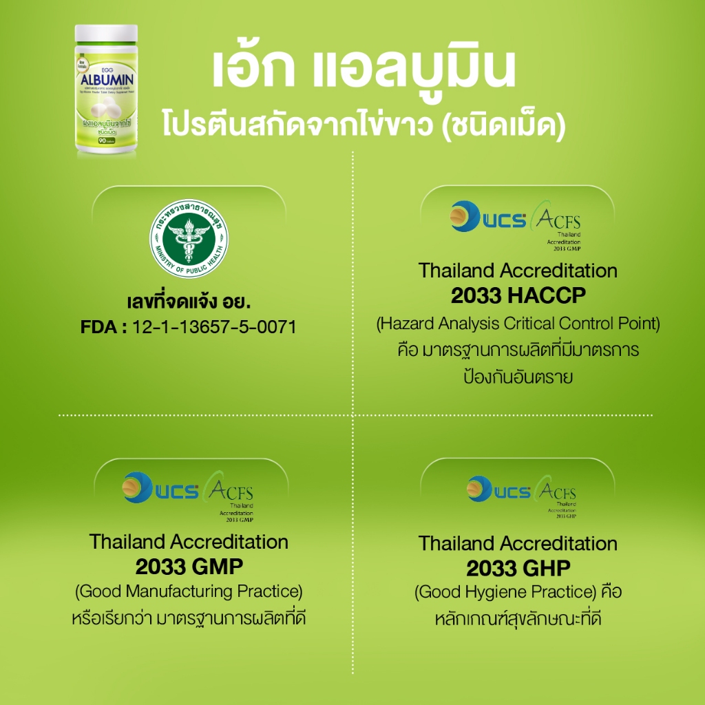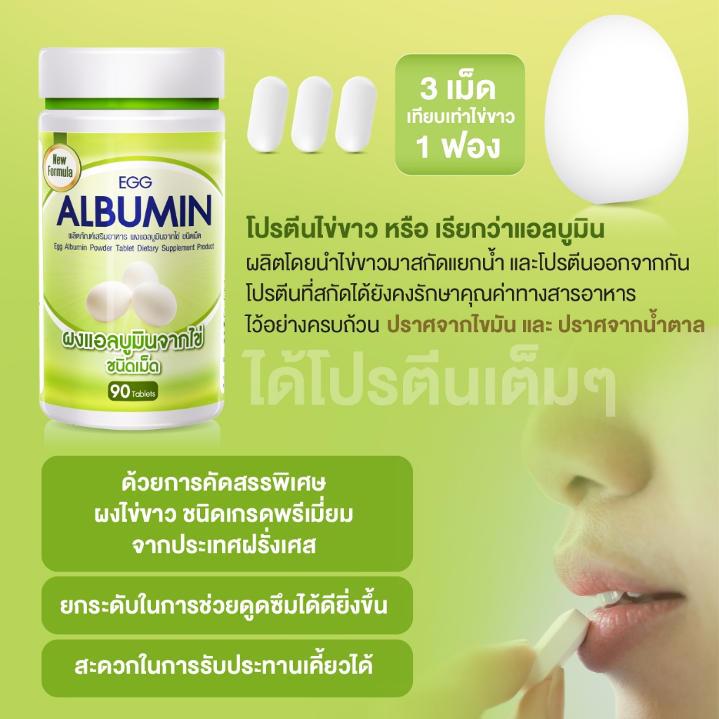 ไข่ขาวเม็ด ( 90 เม็ด+ 5 เม็ด 2 ซอง ) Egg Albumin โปรตีนไข่ขาว ชนิดเม็ด แอลบูมิน cosma