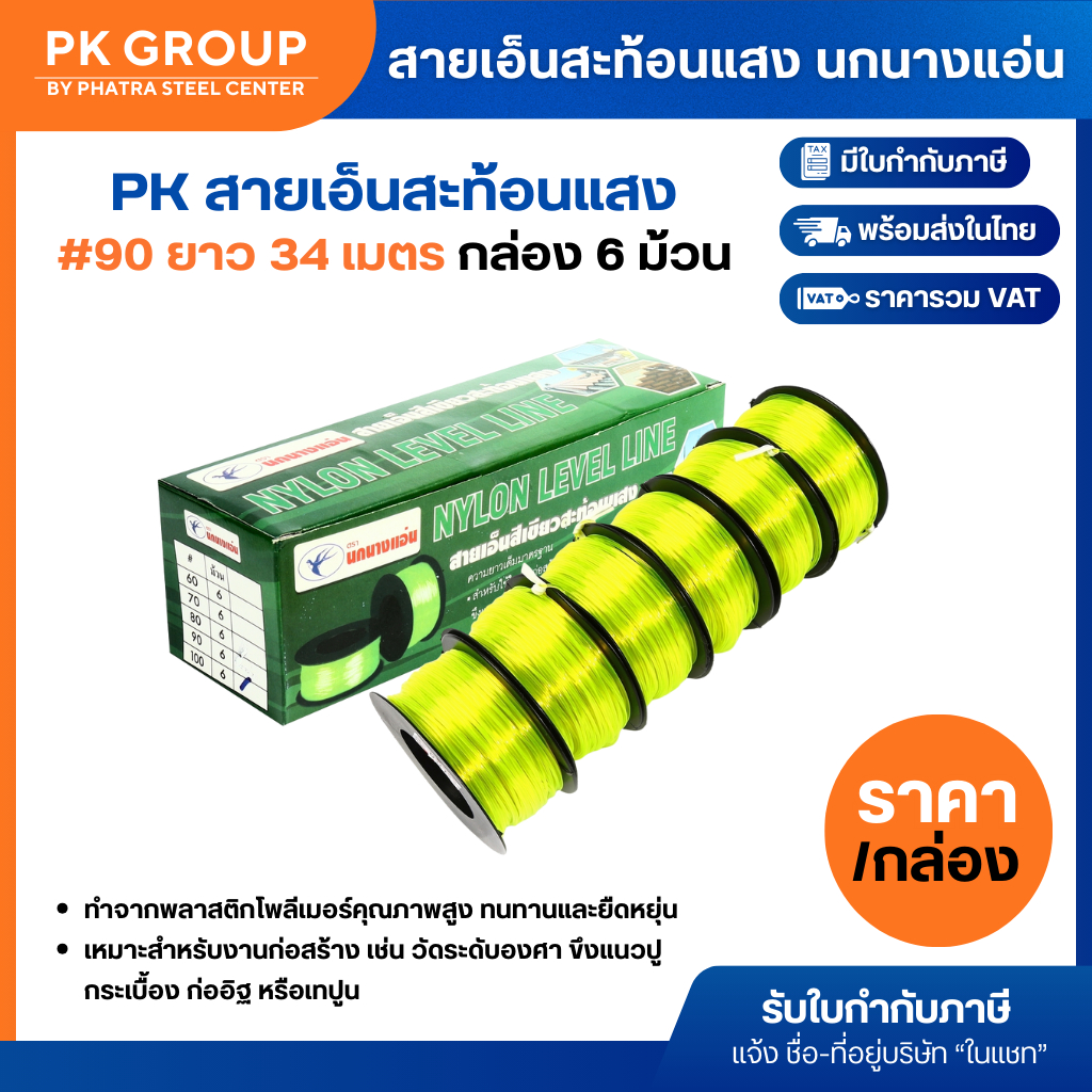 สายเอ็นสะท้อนแสง นกนางแอ่น เบอร์ 60,70,80,90,100 เหมาะสำหรับในการก่อสร้าง เพื่อวัดระดับองศา